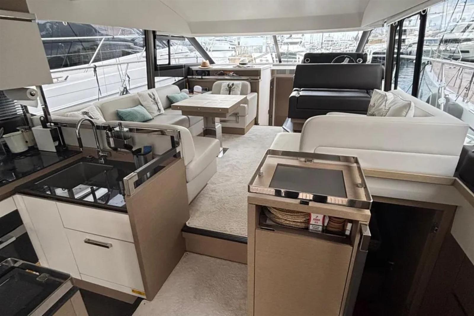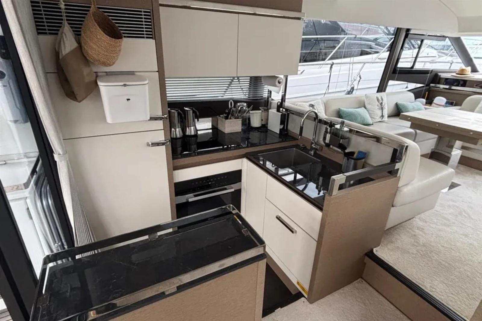 Galley, Oven (MIELE), Deck Refrigerator, Icebox, Dishwasher, Washer, Ceramic hot plate.