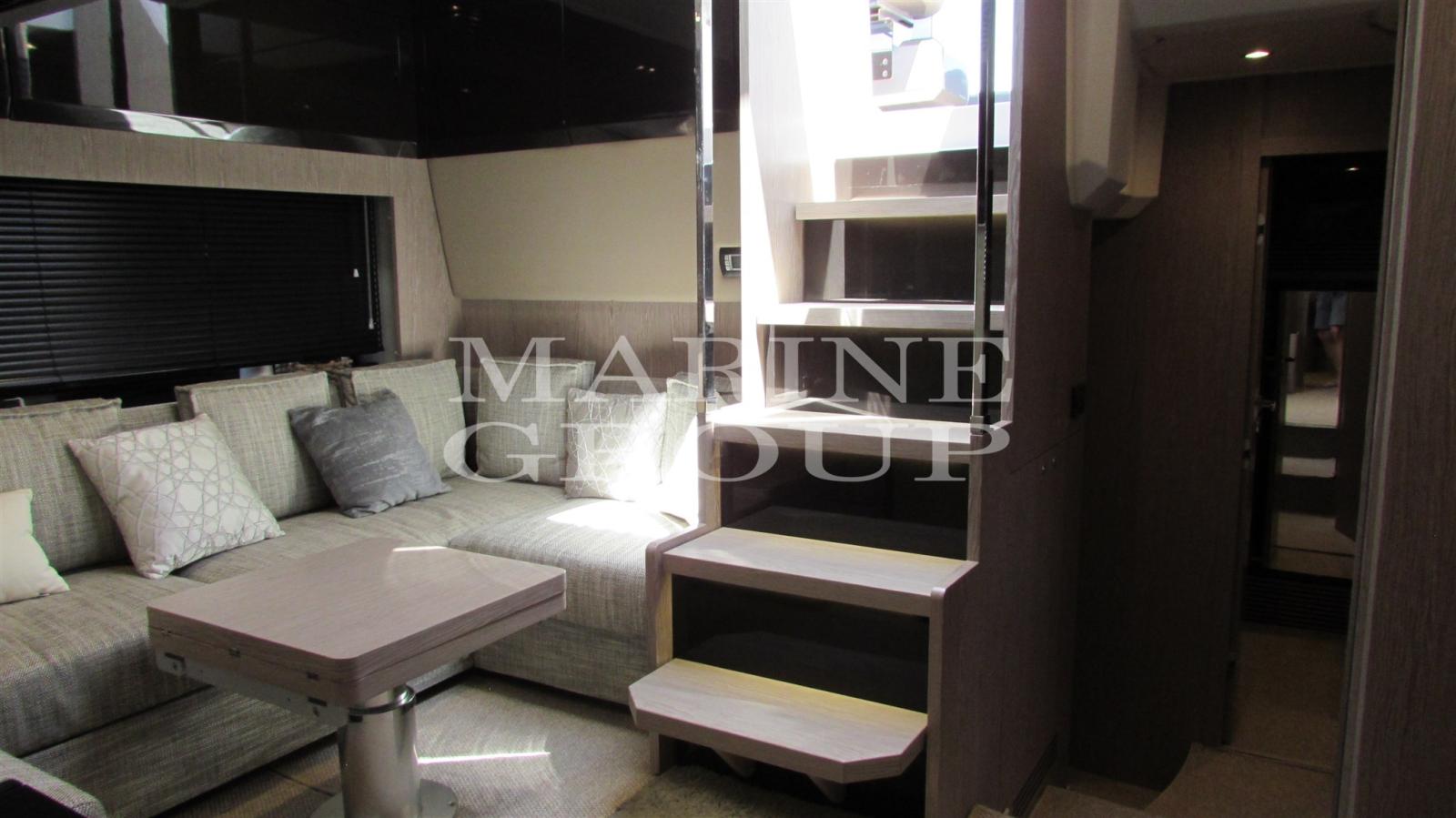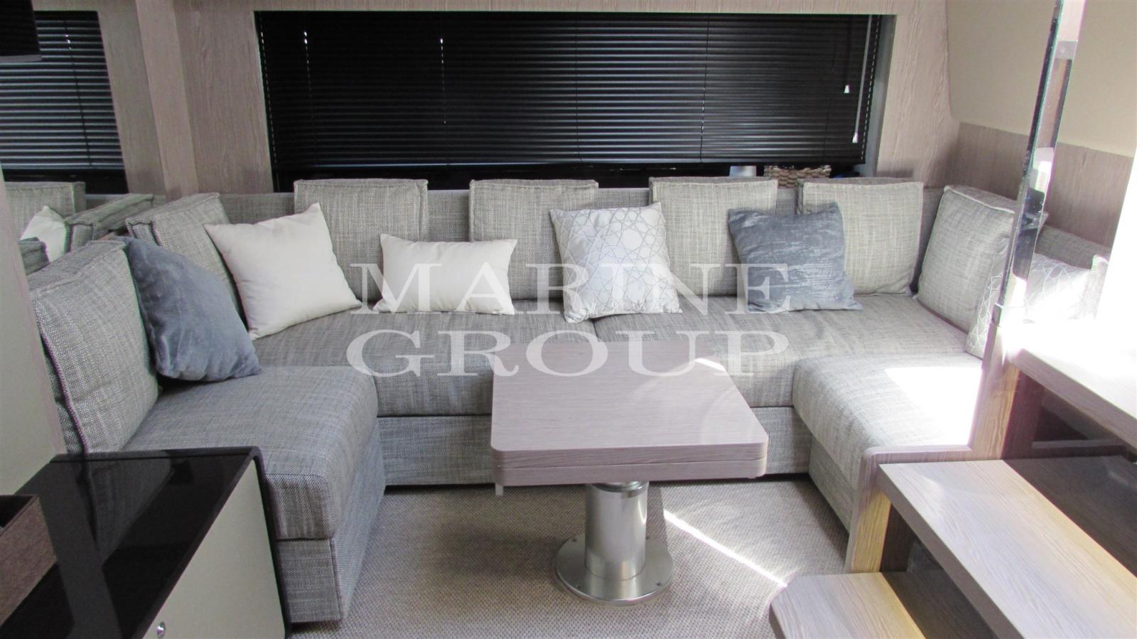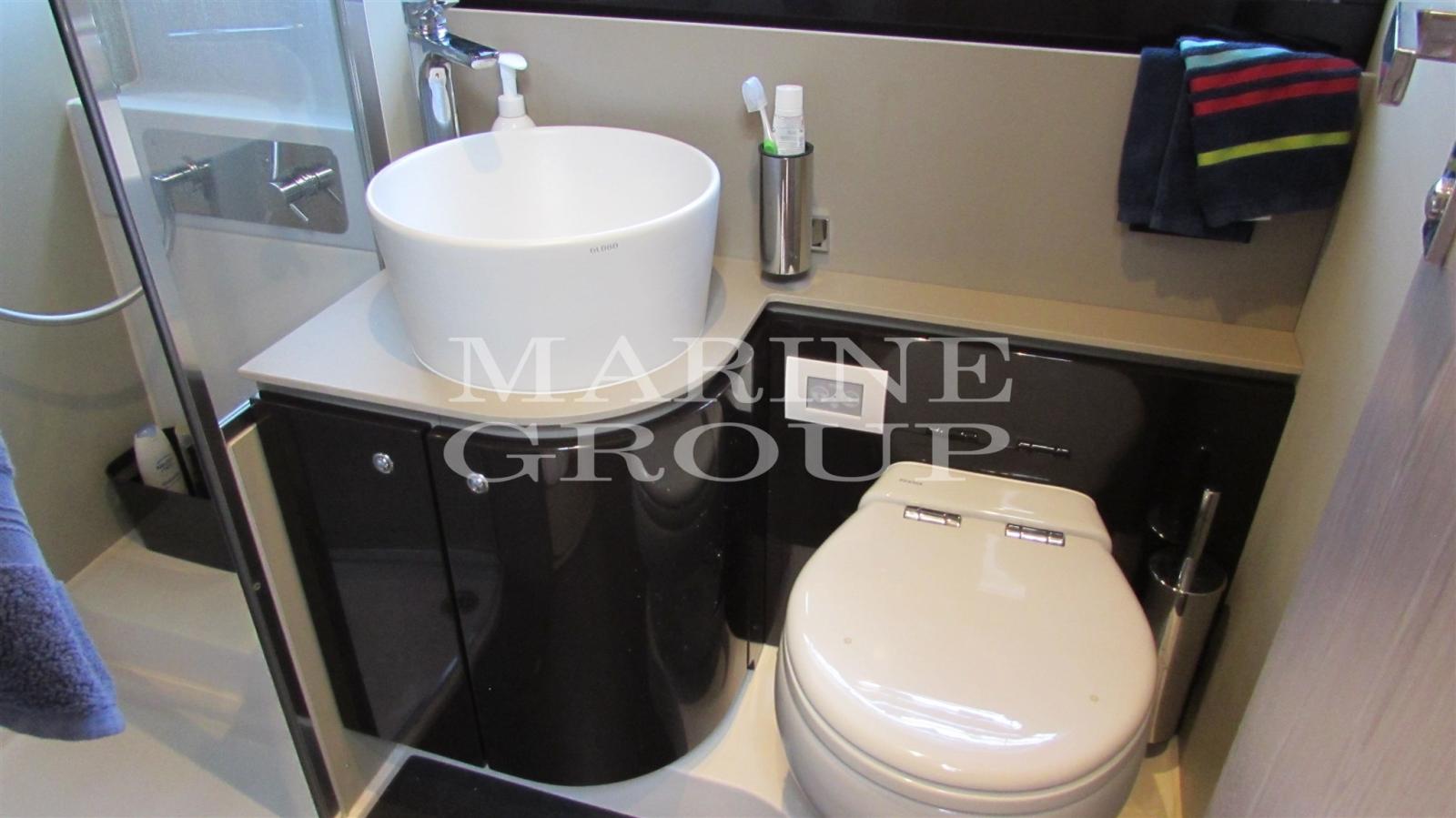 Airy and spacious environment that sees the large dinette and fully equipped kitchen perfectly in front of it; Double master cabin in the bow framed by large windows and flooded with natural light with en suite bathroom complete with separate shower cubicle; VIP cabin amidships with separate beds that can be transformed into a queen-size bed if necessary; generous third cabin with bunk beds; second bathroom with separate shower cubicle.