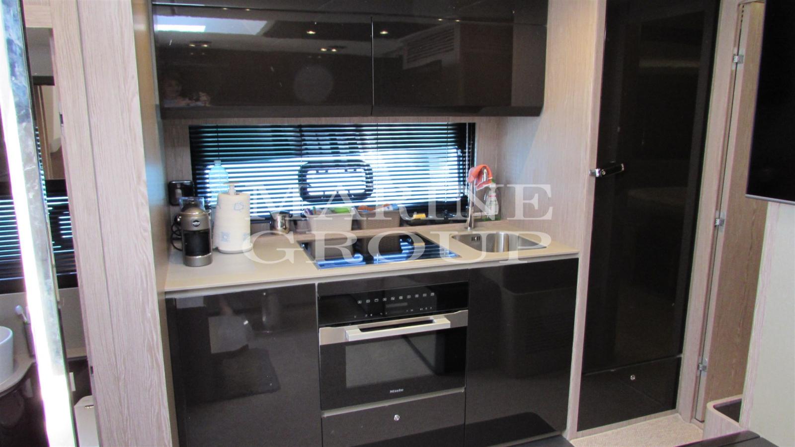 Speakers, Air Conditioning (60,000 BTU), BBQ/ Grill (Cockpit), Bimini (Bow and Aft), Boiler, Safe (Master Cabin), Reversible Air Conditioning, Internet Connection, Full Cushions, Stern Cushions, Bow Cushions (with Reclining Backrest), Cockpit Cushions, Dimmer for Lights, Oven (Miele combined), External Refrigerator, Internal Refrigerator, Home Theater, TV System, Washer-Dryer, Dishwasher (Miele), TV Sliding Mechanism, Ceramic Hob (Miele), 12v Indoor Sockets, 220v Indoor Sockets, AM/FM Radio (Fusion ), Stereo, Camera (Garmin GC 200), Window Covers (Black), Seat Cover, Awning, 2 TVs, Anchor (Anchor Ultra Marine 35kg), Radar Antenna, Auto Dynamic Trim Interceptor (Volvo Penta), Battery Charger, Electronic Engine Control, Deck Shower, Bow thruster (6.5 Kw), Swivel Headlight (electric), Tender Garage (with Electric Winch), Hard top, Chain wash, Sink in the cockpit, Log, Courtesy lights, 2 Underwater lights, Jet ski (Sea-Doo 900 ace - 90), Gangway (Opaco), Platform (Electrohydraulic), Teak cockpit, 220V quay socket, Quay water intake, Electric windlass, Swim ladder, Copilot seat, Cockpit table (Carbon fiber), Folding saloon table, Trumpet, 2 Stern mooring winch