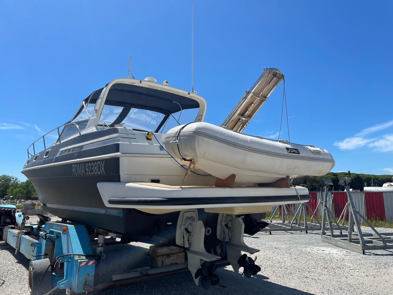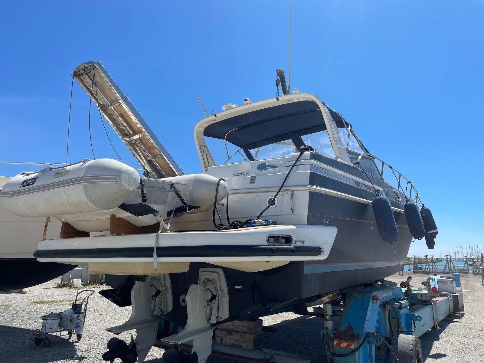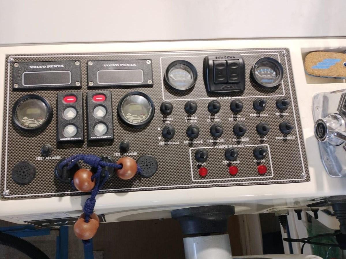 Fume/Gas Detector, Engine Alarm, Bilge Alarm, Alternator, Electric Engine Compartment Opening, Water pressure pump, 3 Batteries, Teak Side Decks (FLEXITECHT), Special Colour, Deck Shower, Electric Flaps, Fire Extinguishing System, Flaps Indicators, Washbasin in the cockpit, Courtesy Lights, Underwater lights, Outboard engine for tender, Fenders, Gangway, Platform, 3 Automatic Bilge Pump, Manual Bilge Pump, Teak deck, Teak Cockpit, Shorepower connector, Water harbor connector system, Rollbar, Electric Windlass, swimming ladder, Saddles for tender, cockpit table (ELETTRICO), Tender (ARIMAR CHIGLIA RIGIDA 2,5), Horn, Teak Deckhouse, Winch, Winch Hydraulic.