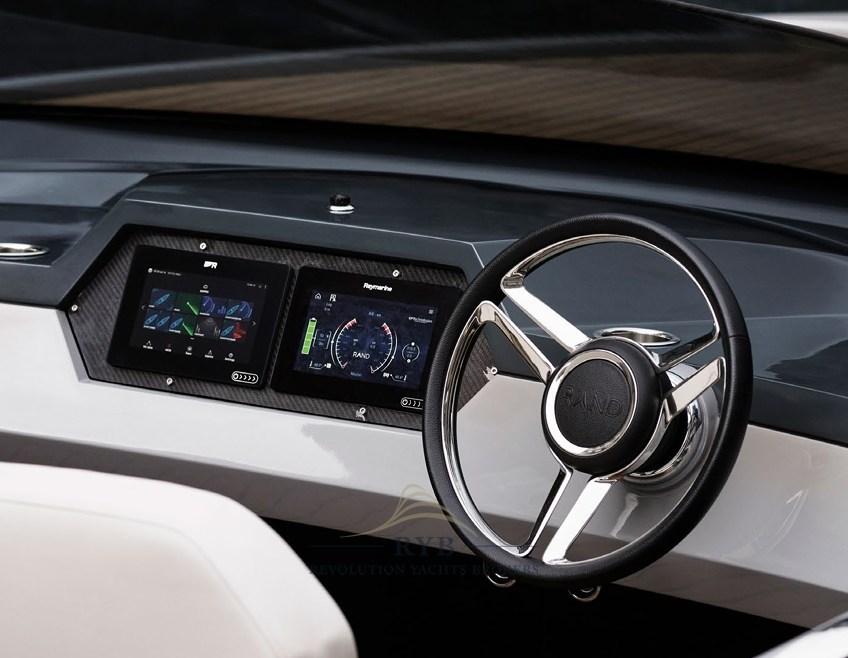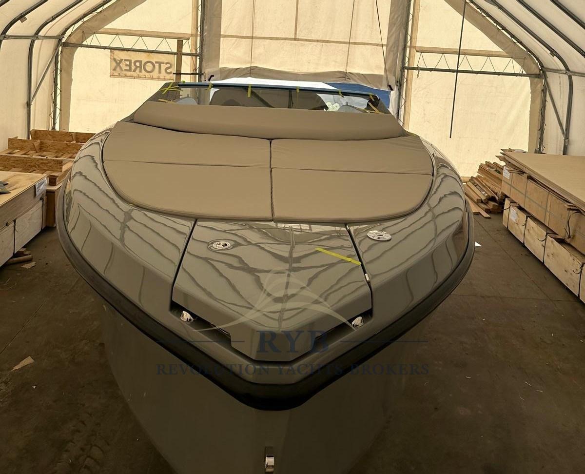 The RAND Spirit 25 is a luxurious 25-foot open day-cruiser that redefines life on board, offering a stylish and functional leisure platform for up to 6 people. This model combines the freedom of movement of a center-console (walkaround) with the protection and classic aesthetics of a sports motorboat, ensuring a dynamic driving experience and high usability of spaces.