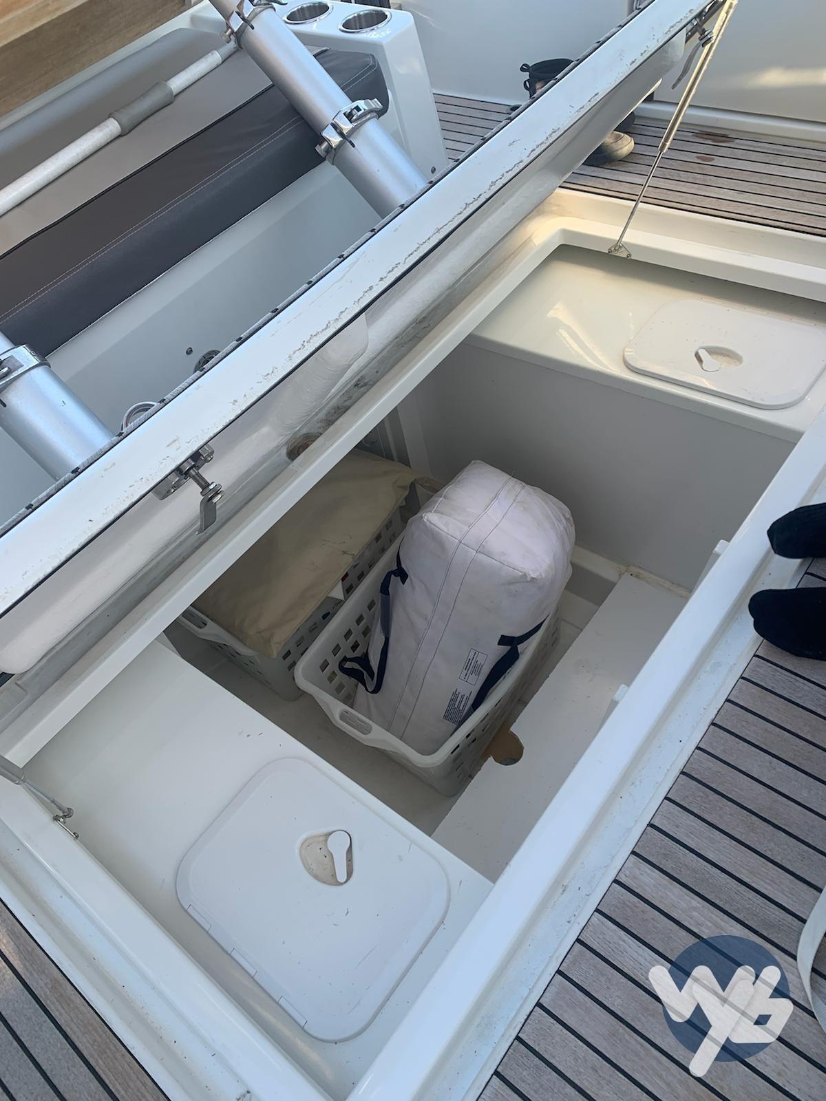 Engine Alarm, Bilge Alarm, Water pressure pump, Deck Shower, Directional Spotlight, Washbasin in the cockpit, Manual Bilge Pump, Voltage Rectifier, Rollbar, Electric Windlass, swimming ladder, cockpit table, T-Top.