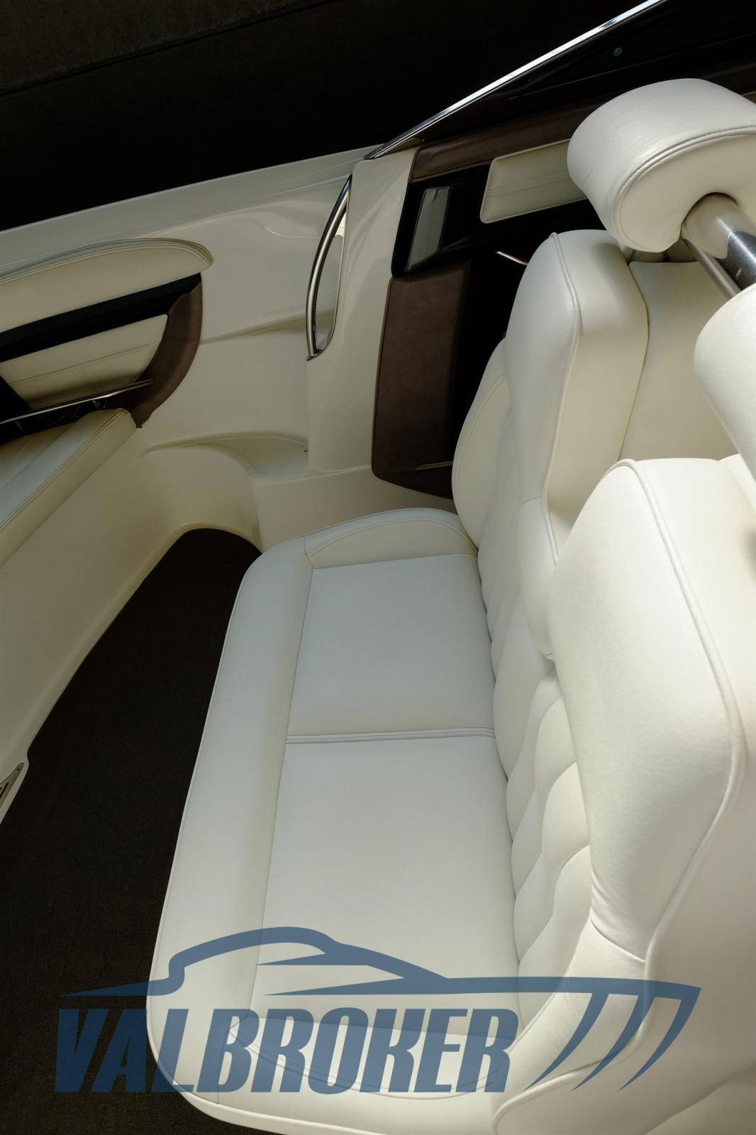 folding cleats in the bow, eyebolt, bow lights, double hatch in the bow, stainless steel handrail in the bow, cup holder, removable carpet, extra large racing seats, engine shutdown safety system with bracelet, stand-up driver's seat, leather sofa white nappa leather, 4-blade Bravo stainless steel propellers, automatic fire extinguisher in engine compartment, electric engine compartment opening, water ski tow hook, transmission coupling rod