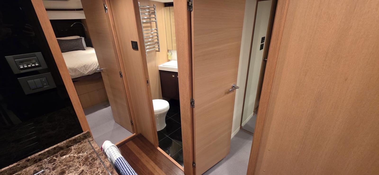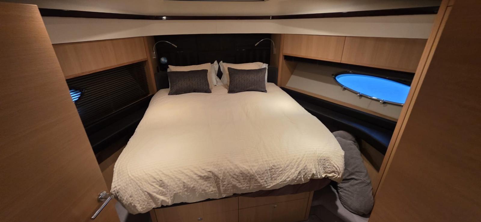 exterior trim were renewed in 2023, the Raymarine screens were replaced in 2016 and the complete air conditioning was overhauled in 2022.The boat has three spacious cabins, each with its own en-suite bathroom. The master cabin occupies the full width of the