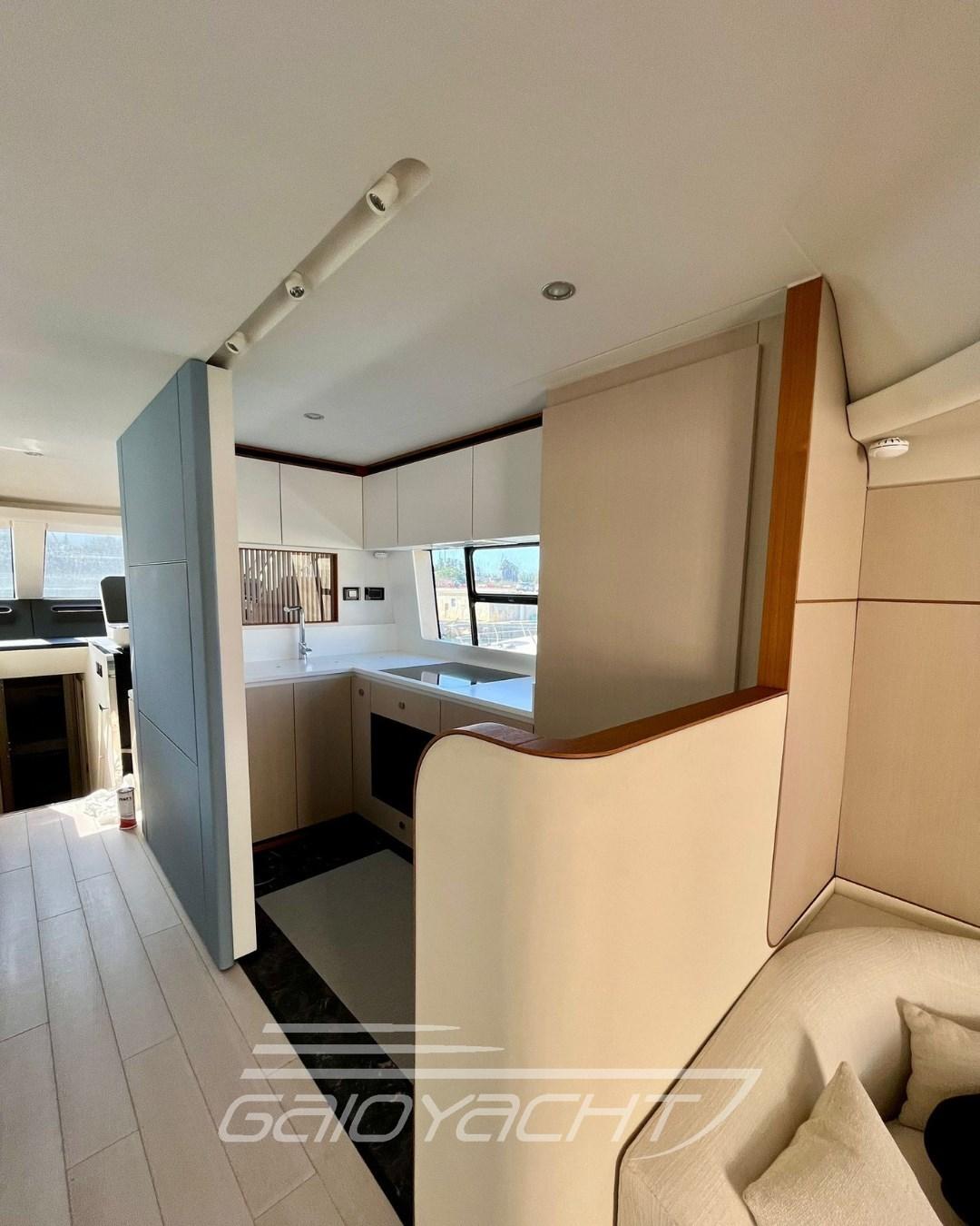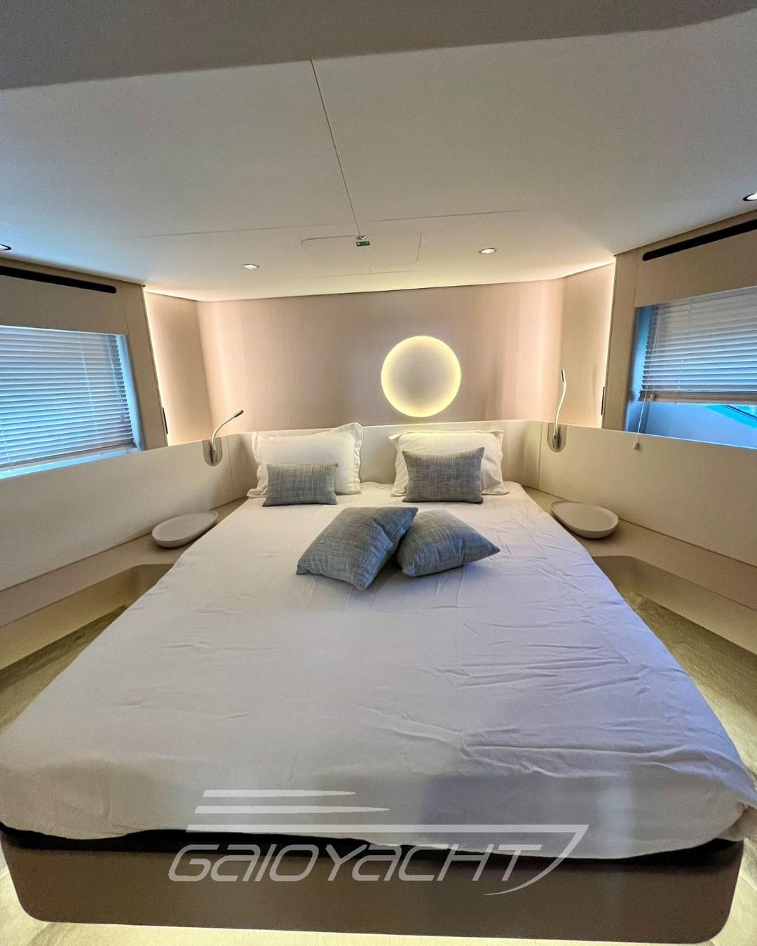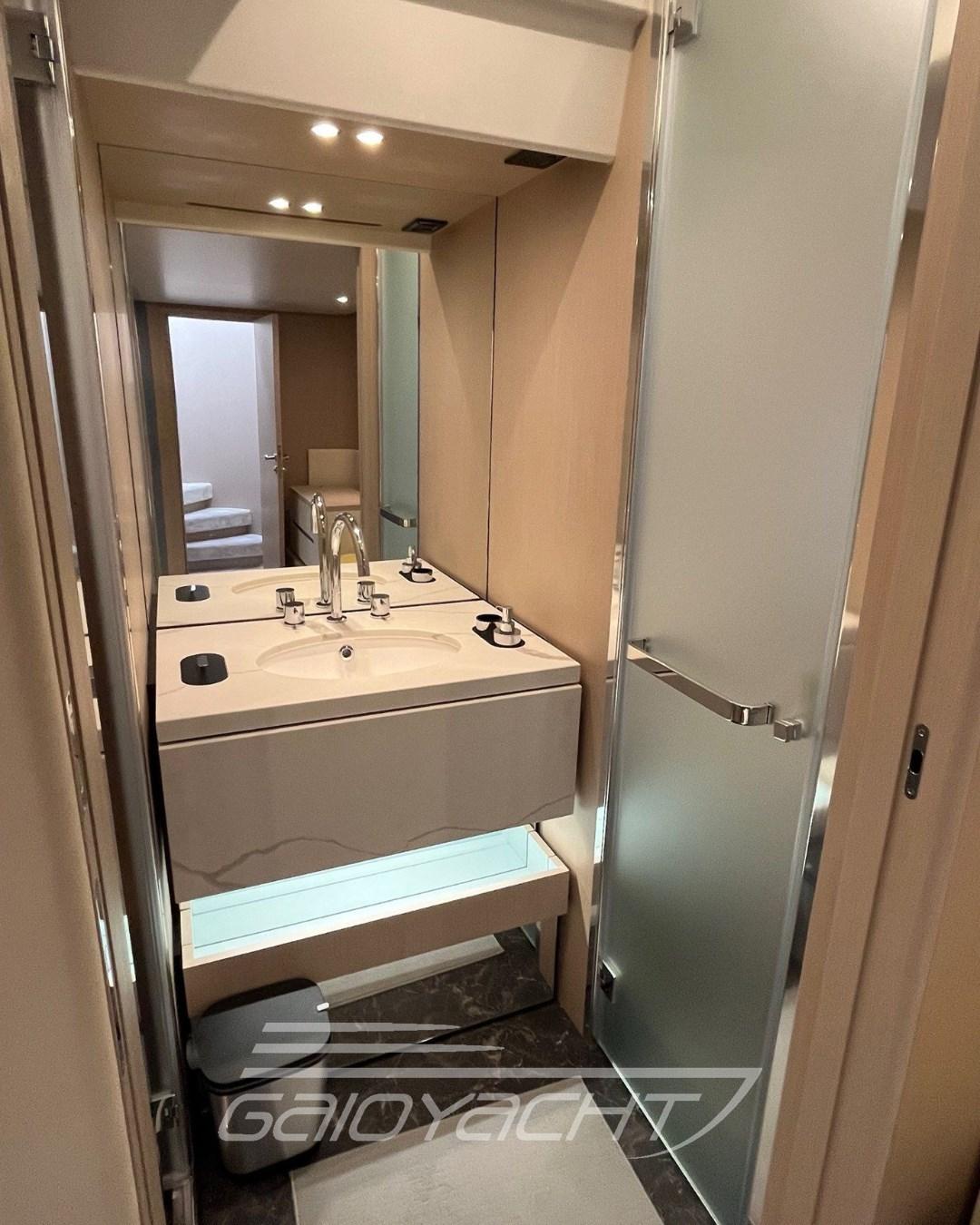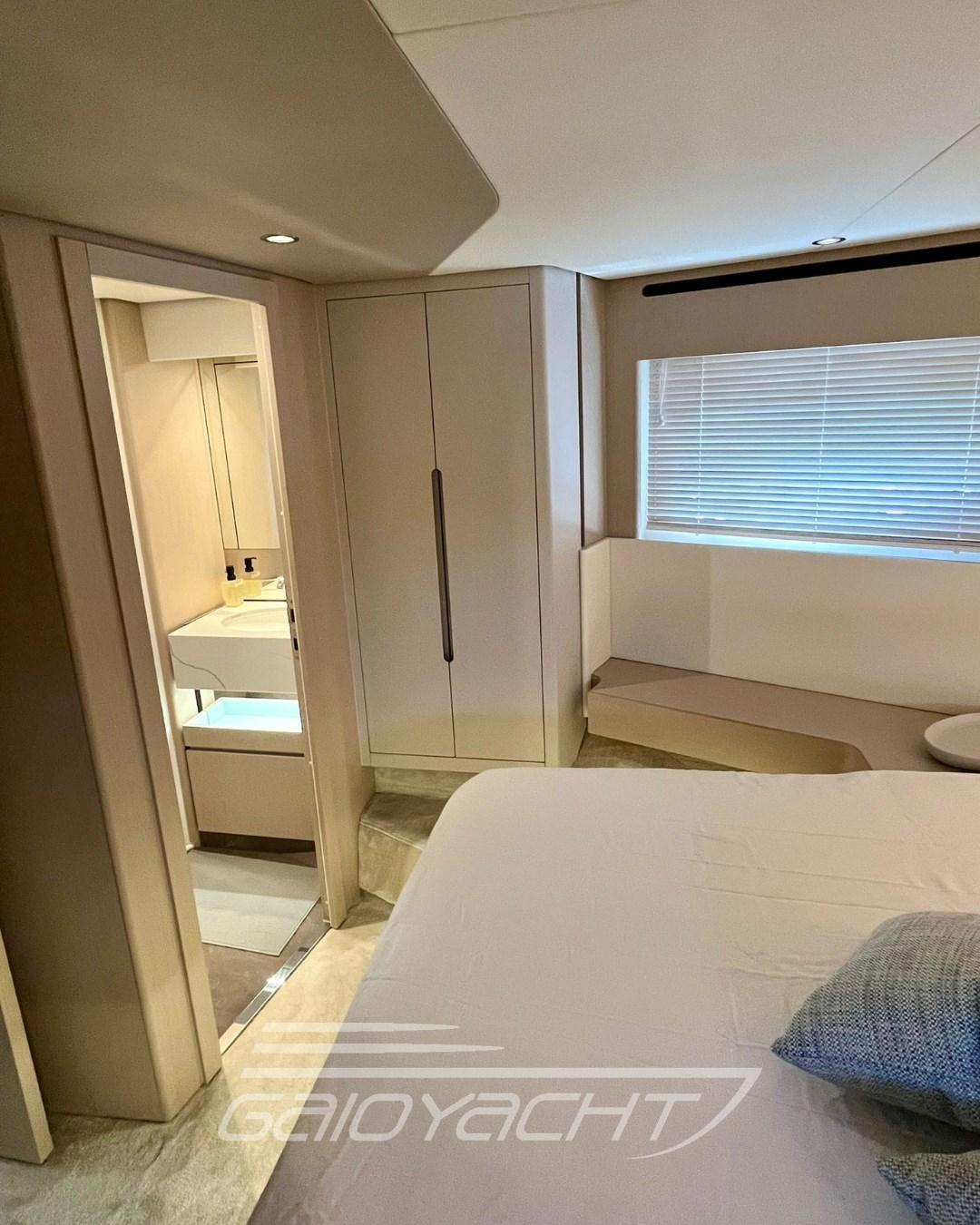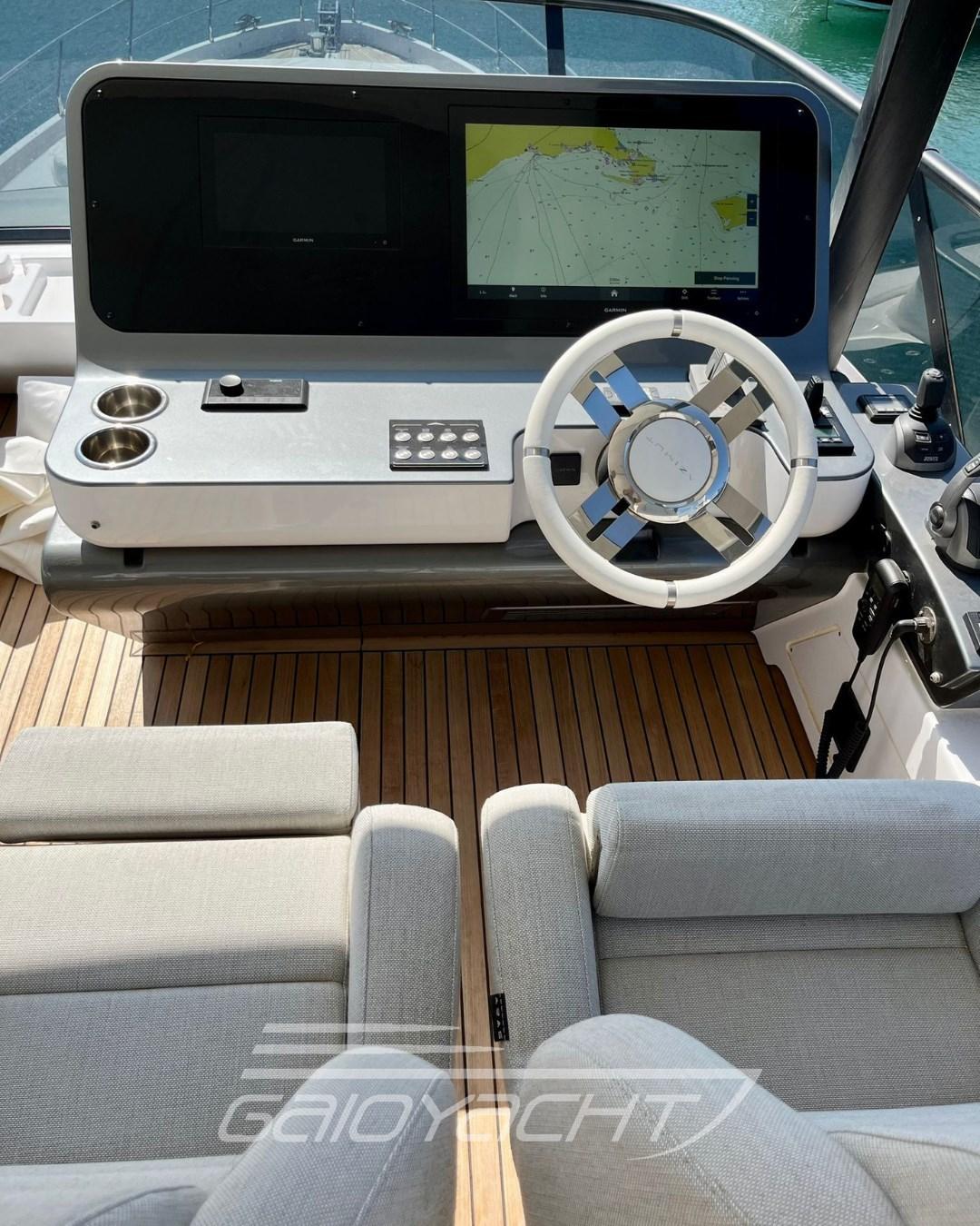 Electric roller blind in the cockpit; Additional teak bow table; Quartzite vanity top in all bathrooms; Garmin Gold Package; Volvo Interceptor system; Racor filter for generator; Predisposition for desalinator; Galvanic isolator; Teak on the fly and bow.