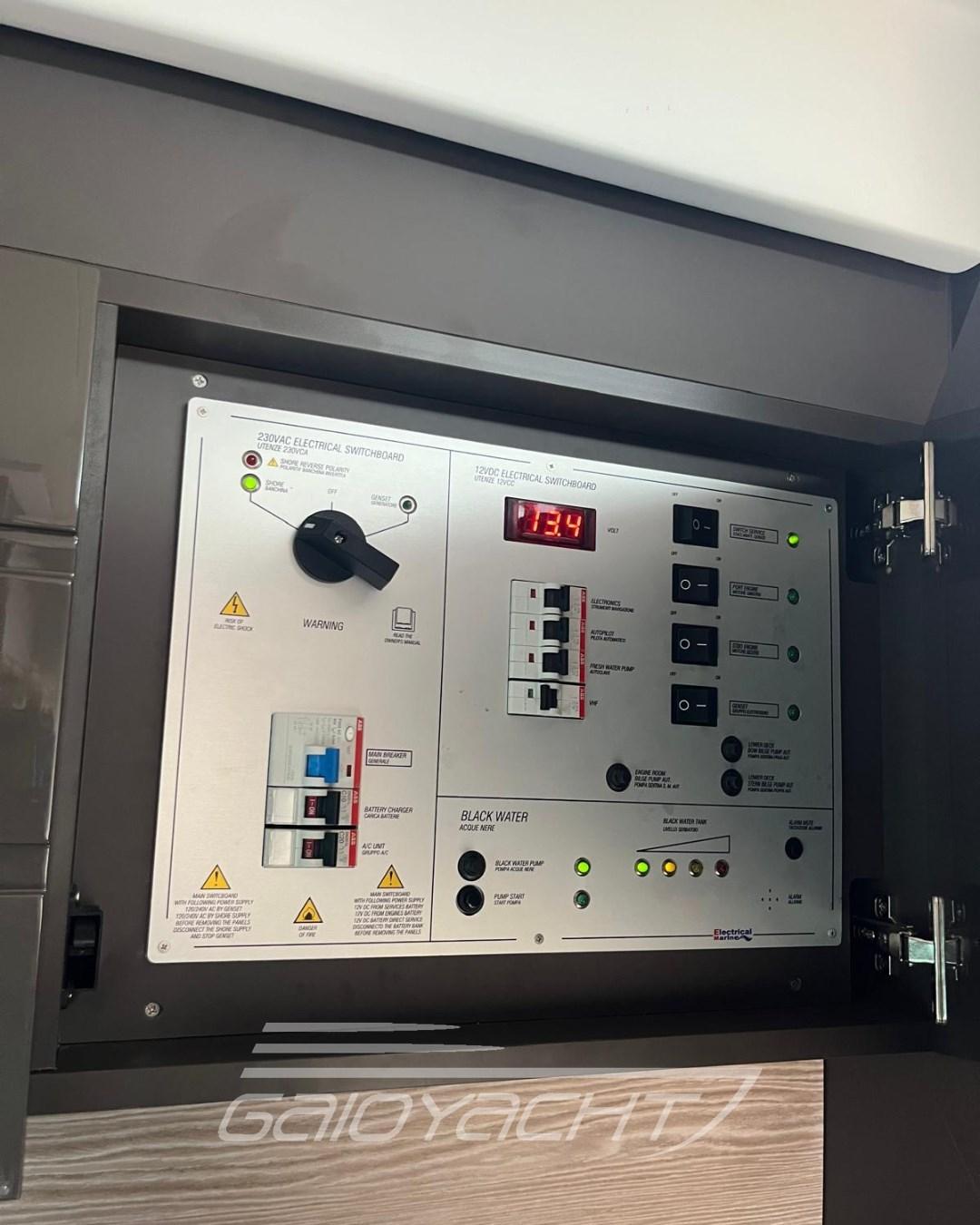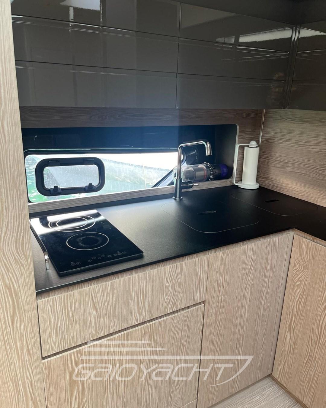 Audio/video system in the owner's cabin; Teak platform; Stovetop in cockpit.