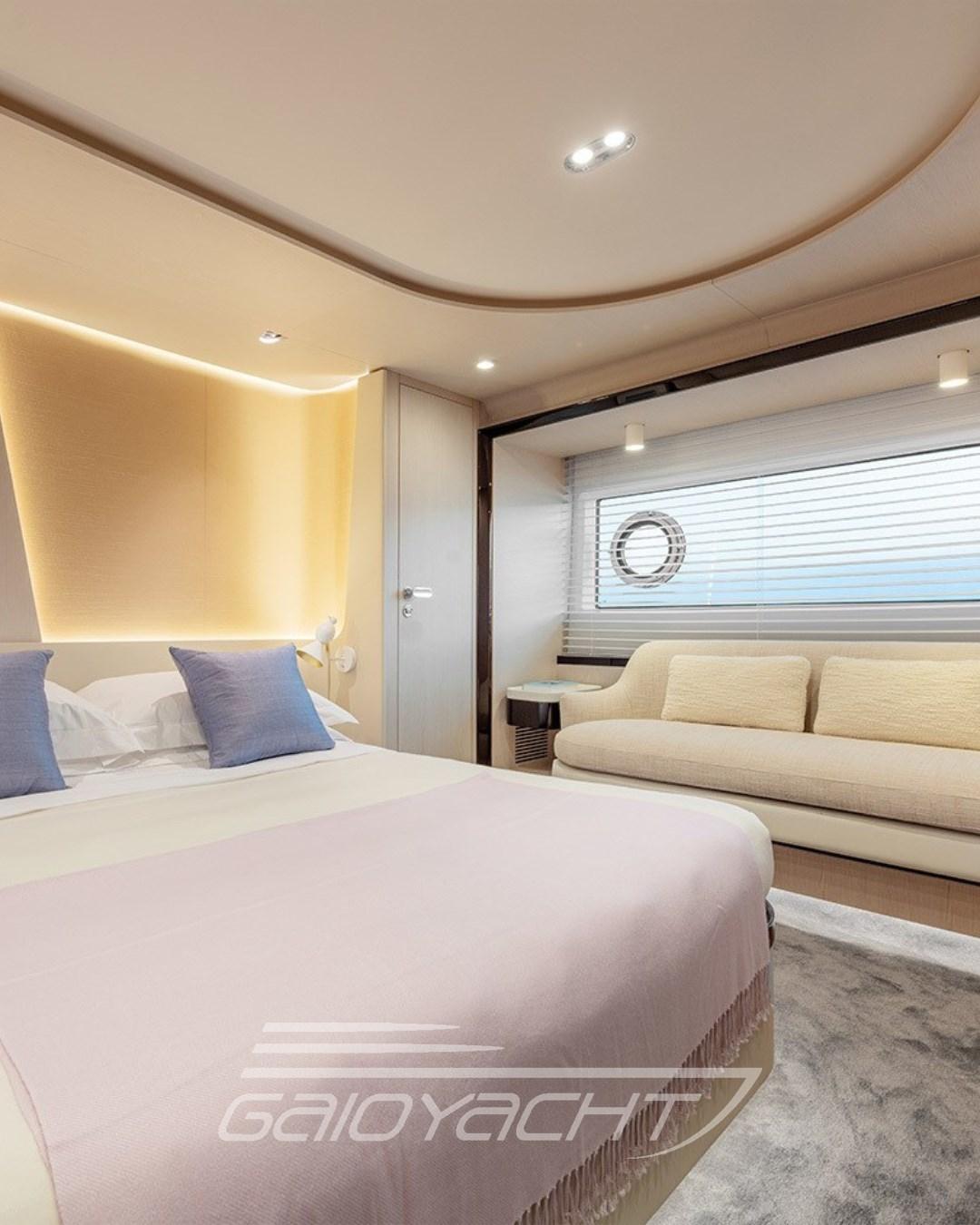 Electric floodlight with additional control on the second rudder; 3xVolvo IPS 1350 (1000 hp) optional; Teak bow table; Automatic cockpit awning; Cockpit cabinet with teak top; Co-pilot seat on the flybridge;