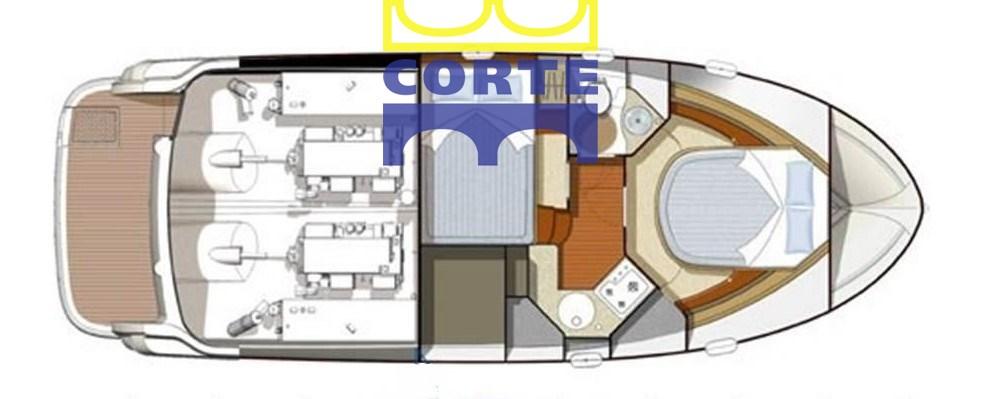 Dinette, Galley, Cabin with double bed in the bow, cabin with French bed in the stern, bathroom.