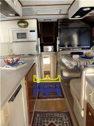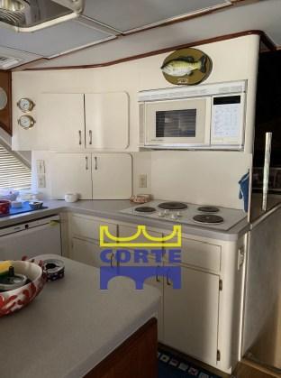 Galley, 4 Burner, Deck Refrigerator, Dishwasher, Washer.