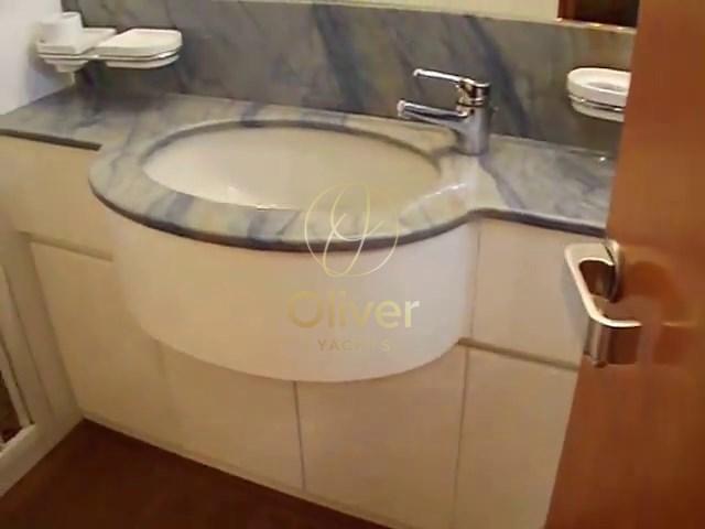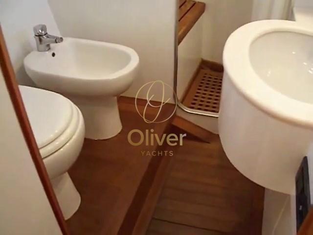 Below the bow is the large master cabin with a large bathroom with toilet, bidet and separate shower. On the stern side there are two double cabins on the floor, both with reserved toilets equipped with toilet, bidet and separate showers.