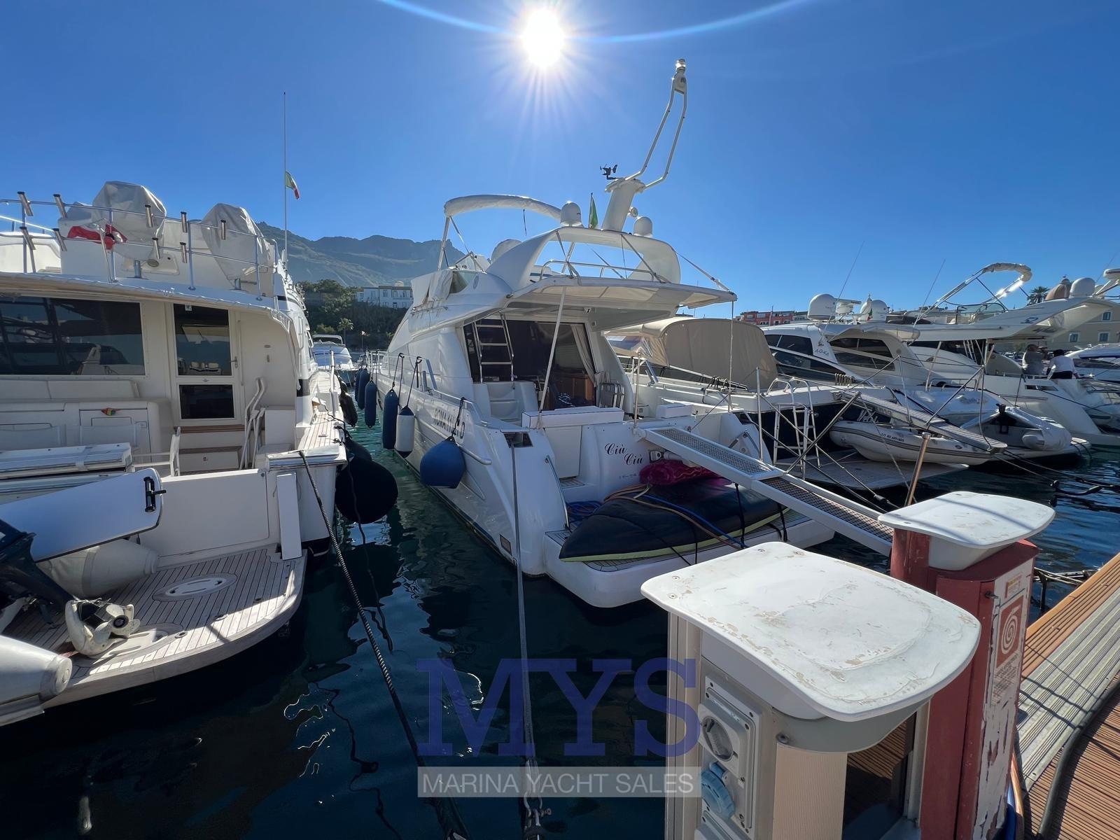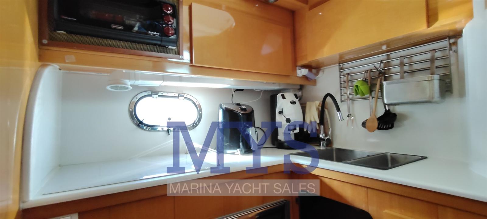 Air conditioning, Besenzoni gangway, bathing platform, teak in excellent condition, 3 internal refrigerators, oven, ceramic hob, washing machine, TV, stereo, camera, complete internal and external cushions, fly and cockpit awnings, fly cover, TV system, digital terrestrial, courtesy lights, outdoor shower.