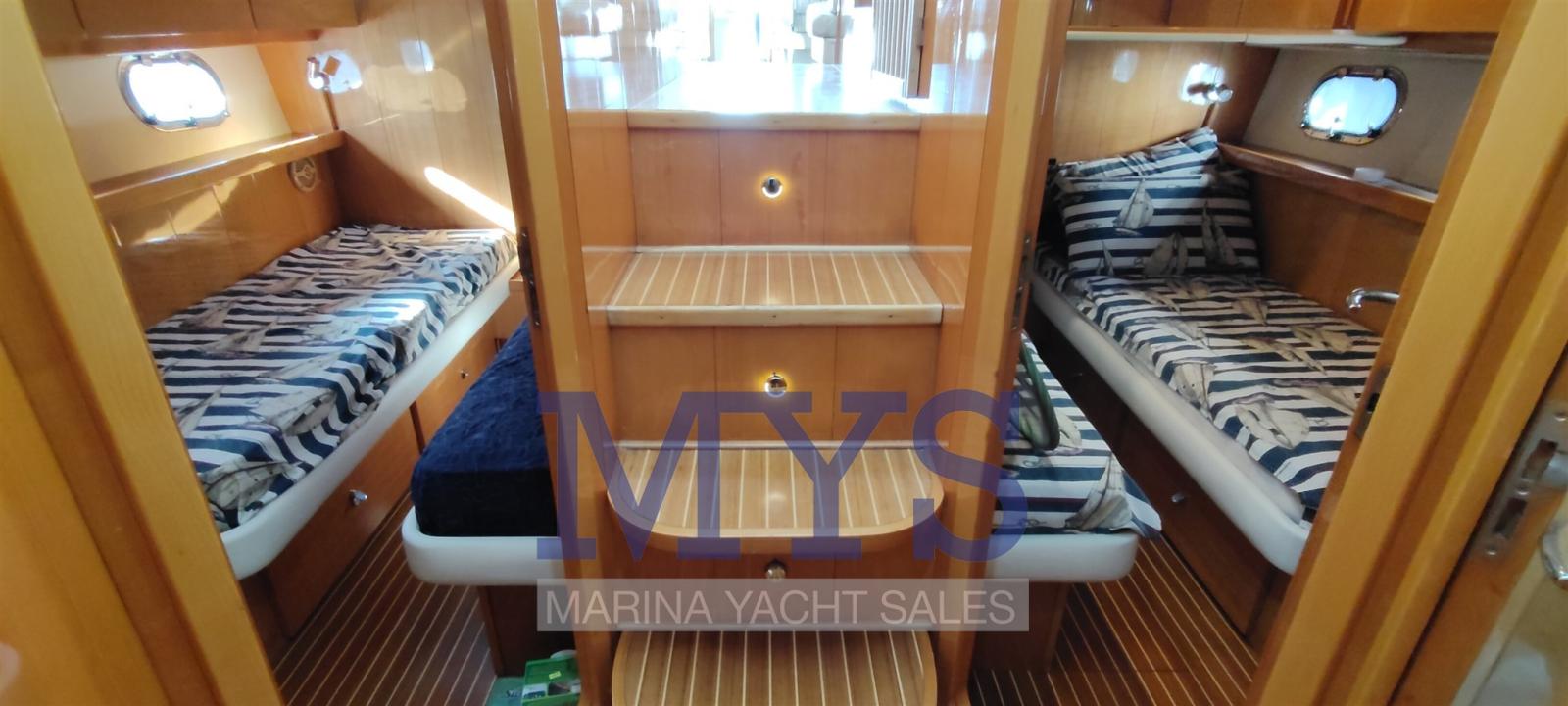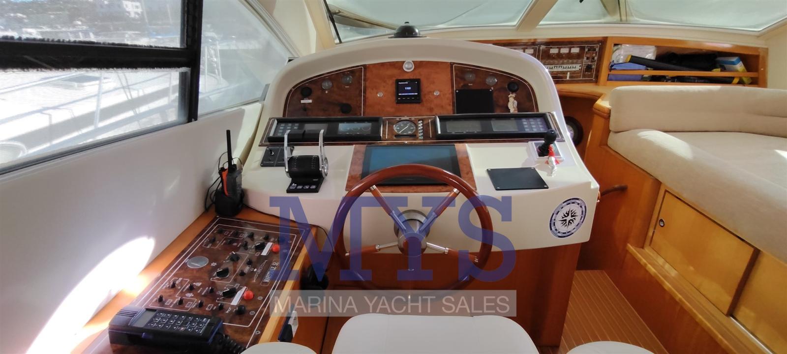 Double wheelhouse, GPS, Radar, Autopilot, VHF, echo sounder, proportional bow thruster, electric flaps, electronic engine controls, electric windlass, chain meter counter, complete engine instrumentation, automatic and manual bilge pumps.