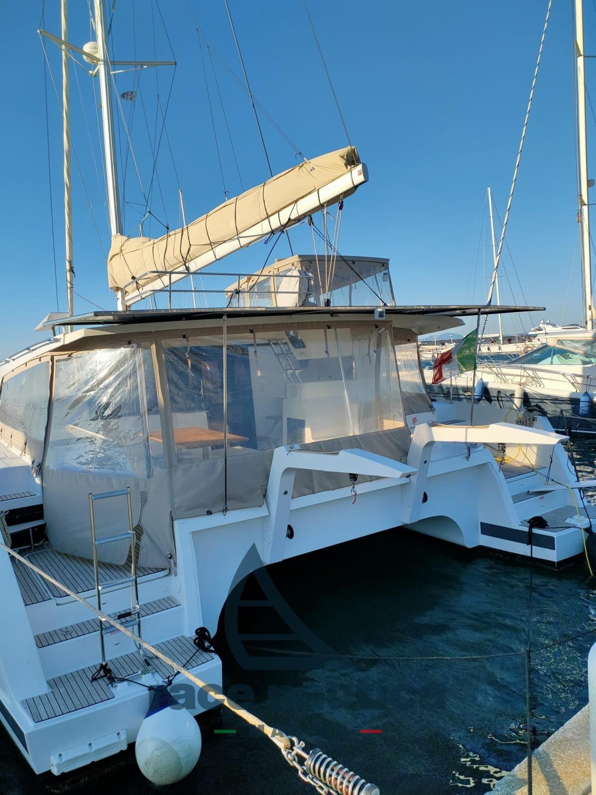 Hull made in May 2025.Solar Panels, Fisher Panda Generator, Air conditioning in all cabins and in the dinette, Additional vertical freezer in addition to the one already present as standard at the bottom, New kitchen worktop with induction burners, 2 Volvo D2 60 HP engines, Triple folding propellers/V60HP, Maestro hull carpet, Papyrus fabric external cushions, Papyrus external awnings, Clay fabric internal cushions, cockpit sun canopy, Fixed bimini in wheelhouse position, Fixed bimini closure at wheelhouse station, External bow saloon cushions, Transom fenders, Teak mirrors/cockpit, Additional mooring cleats, Integrated gas plate, 1 safe with code, Square awnings, tb front-end fitting, Handrail on the stairs, Square table convertible into bed, Double VHF AIS helm station, GARMIN 2 Smart Cruising (pilot, VHF, AIS, 2 GPS 7410, 2 multi GMI20), Radar + support + wiring, Food Conserving 12V 90L, Cockpit refrigerator, Dishwasher with 6 place settings, Washer/dryer 5KG 220V, 3 electric fresh water toilets, Underwater lights 2x21W, Additional AGM 150A auxiliary battery, Low consumption watermaker 12V 60l/h, Rudder lock, Gennaker, Spinnaker pole and Gennaker equipment, Additional winch control with chain counter, Hydraulic davits + paddle support, Antifouling, Epoxy primer, Complete safety equipment for 8 people, Spare anchor, Chain, Rope, Chain + anchor 25 KG, Awnings in cabins, Mooring kit + 6 fenders, Full batten horn mainsail, Automatic mainsail hook, Lazy jack, Electric winch 1500 Watts, Pre-wired VHF masthead antenna, Double stoppers for reefing 2 and 3 gearbox, 12V internal socket and 12V external socket, Deck shower (hot water), Self-timer bilge pumps, Lazy bag, Wheel rudder cover, 1 electric winch with mainsail halyards, Interior courtesy lights, Seawater under pressure, Fusion Bluethoot 4HP audio pack, Main network 220v 50HZ, 2000W converter charger, TV/HIFI video pack, TV/HIFI antenna, Bose speakers and system, 1 Genoa sheet electric winch, Cockpit courtesy lights, External cushions (cockpit + lounge deck).