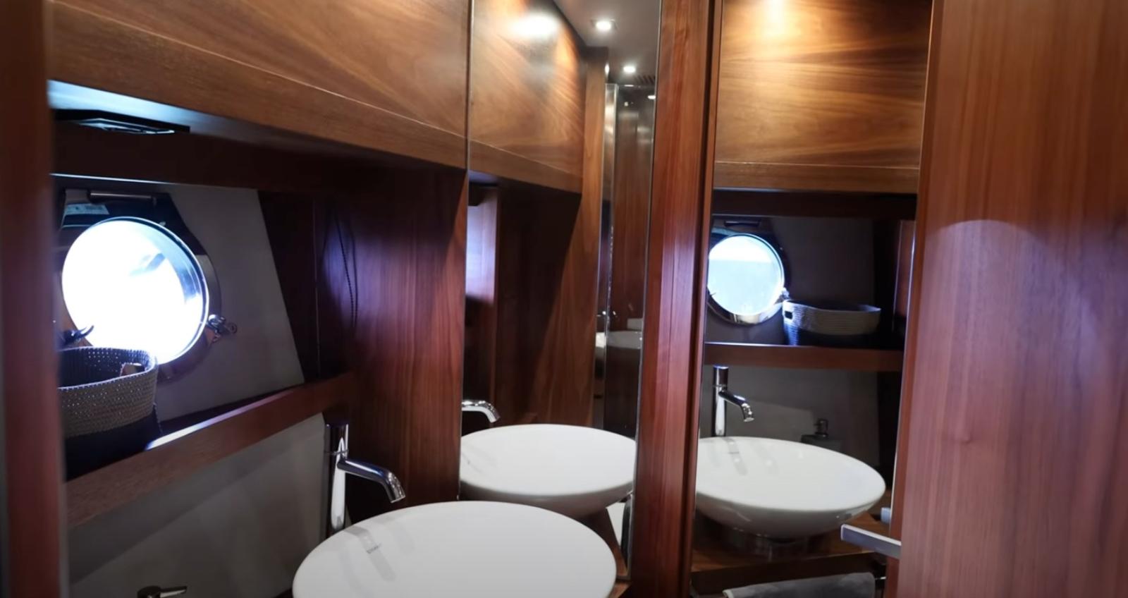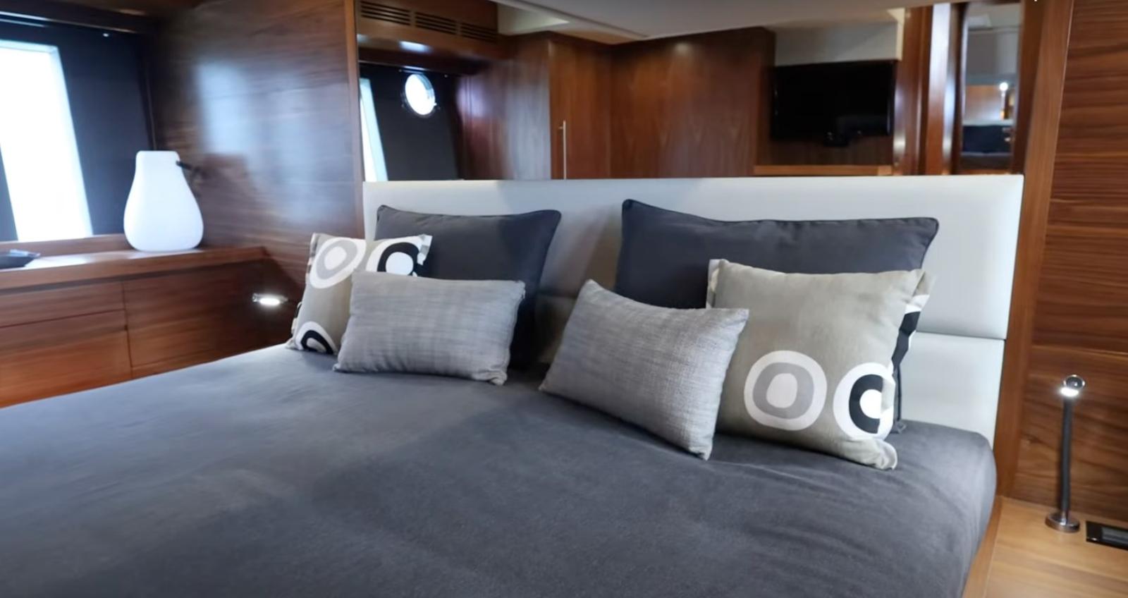 Electric bow thruster - Mase 9 kW generator set - air conditioning - stern platform tender lift - tender - fridge - freezer - stereo.