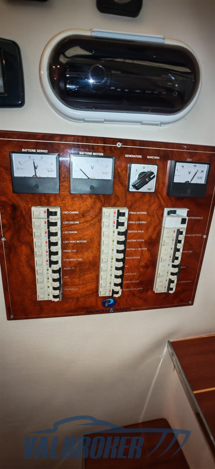 Electric Engine Compartment Opening, Water pressure pump, 3 Batteries (nuove 2025), Deck Shower, Flaps Indicators (bennett), Washbasin in the cockpit, Courtesy Lights, Underwater lights, Gangway (Gandola, idraulica), Platform (teak sintetico), Automatic Bilge Pump, Teak Cockpit (sintetico), Water harbor connector system, Rollbar, Electric Windlass (Lewmar), swimming ladder, cockpit table (Convertibile in prendisole), Living Room Foldable Table.