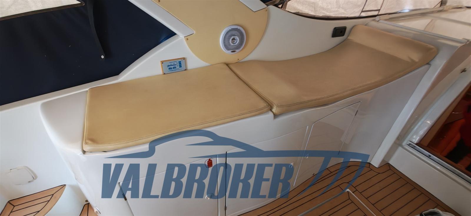 In 2024, the engine service was carried out. In 2025, the service on the transmissions was carried out. Synthetic teak, maintenance-free!! Possibility of creating a sundeck in the cockpit by lowering the table. Chaise Lounge left side driver's seat.