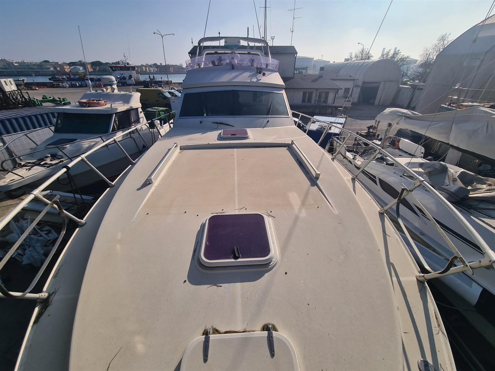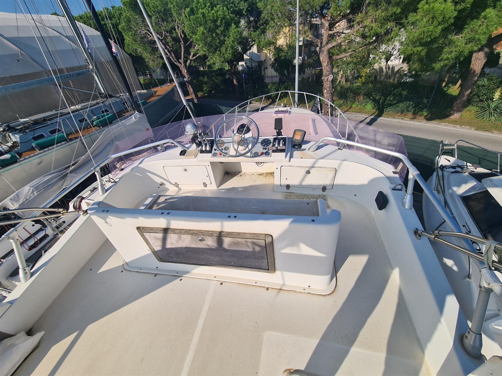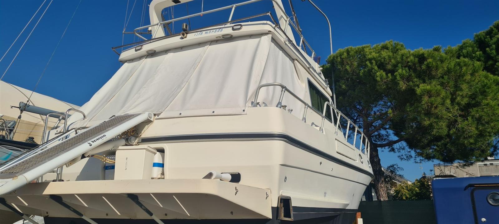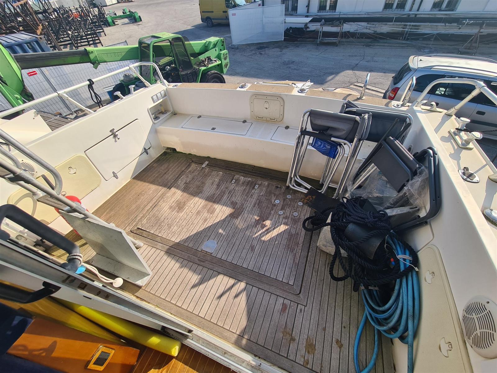 Engine Alarm, Water pressure pump, Batteries (nuove 2022), Deck Shower, Directional Spotlight, Hydraulic Flaps, Electric Crane, Flaps Indicators, Courtesy Lights, Gangway (Besenzoni), Platform, Automatic Bilge Pump, Entry door, Teak Cockpit, Shorepower connector, Water harbor connector system, Voltage Rectifier, Rollbar, Electric Windlass, swimming ladder, Tender (Arimar + mercury 2,5cv), Horn.