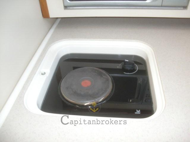 adult amidships, kitchen with sink, kitchenette, oven and microwave