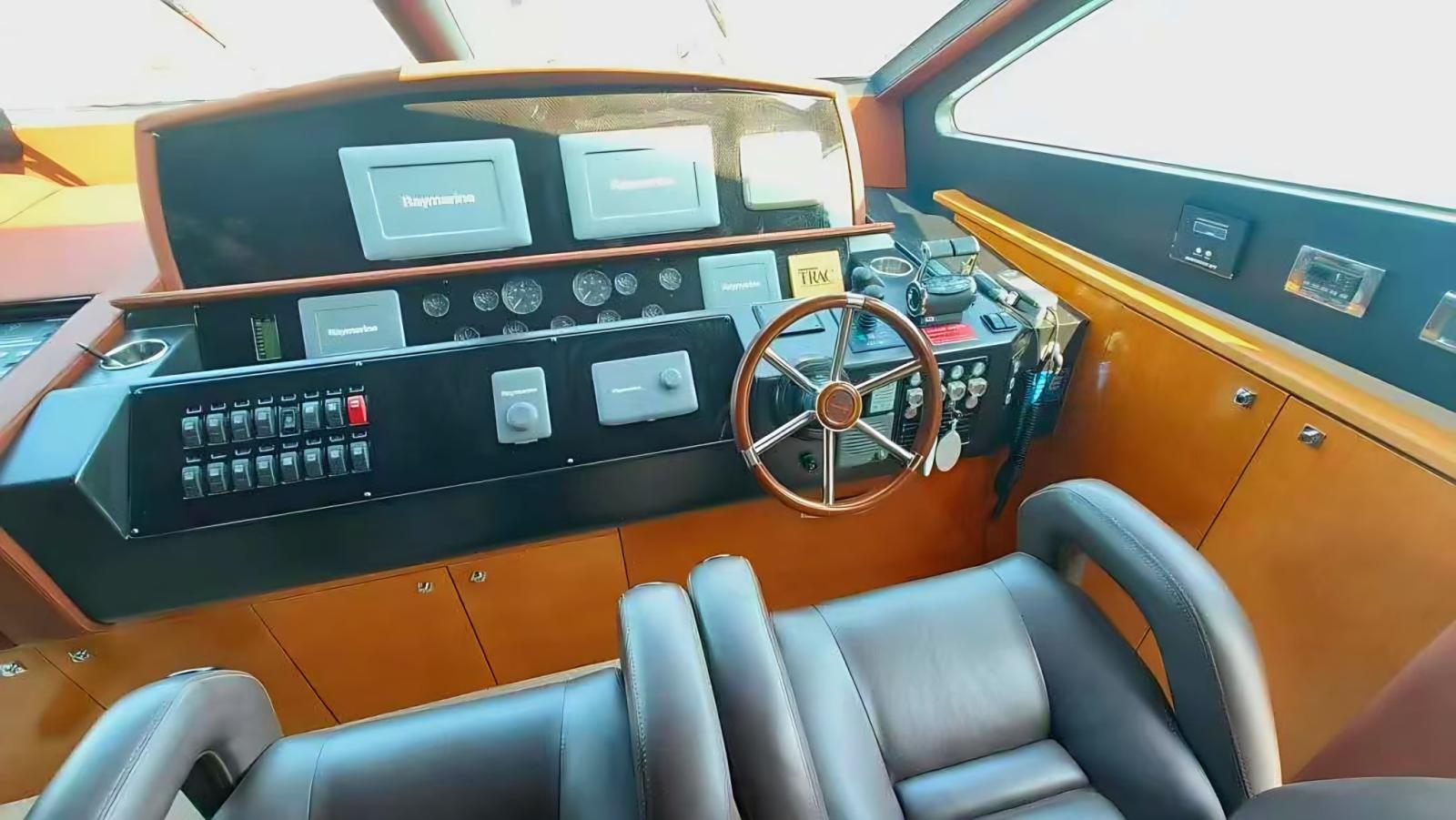 Rudder angle indicator, Electronic engine control, On-Board Computer, Chain counter, Display, Consumption monitor, Plotter with GPS antenna, Control panel, Co-pilot seat.