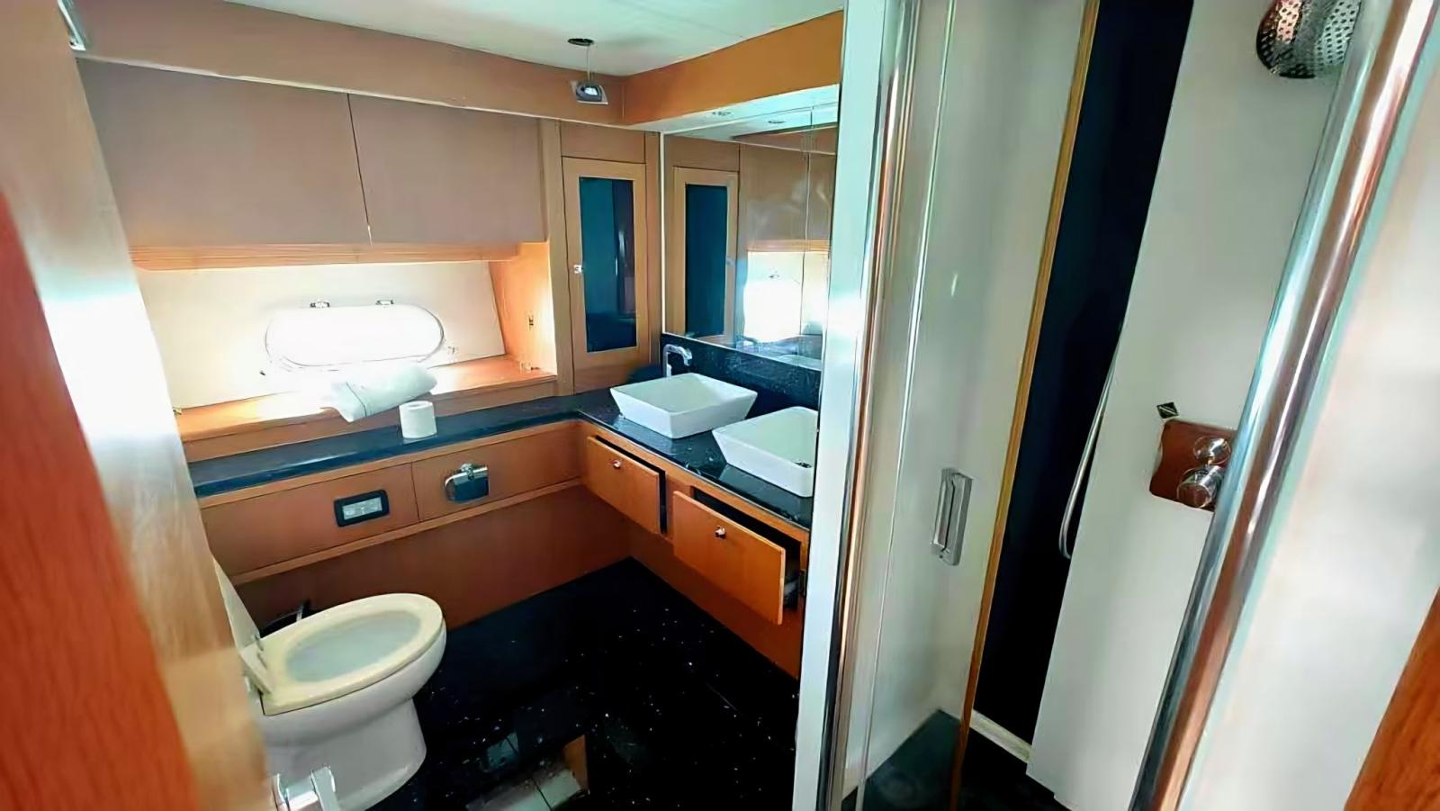 Spacious full-beam master cabin, with double bed and en-suite bathroom with shower cubicle