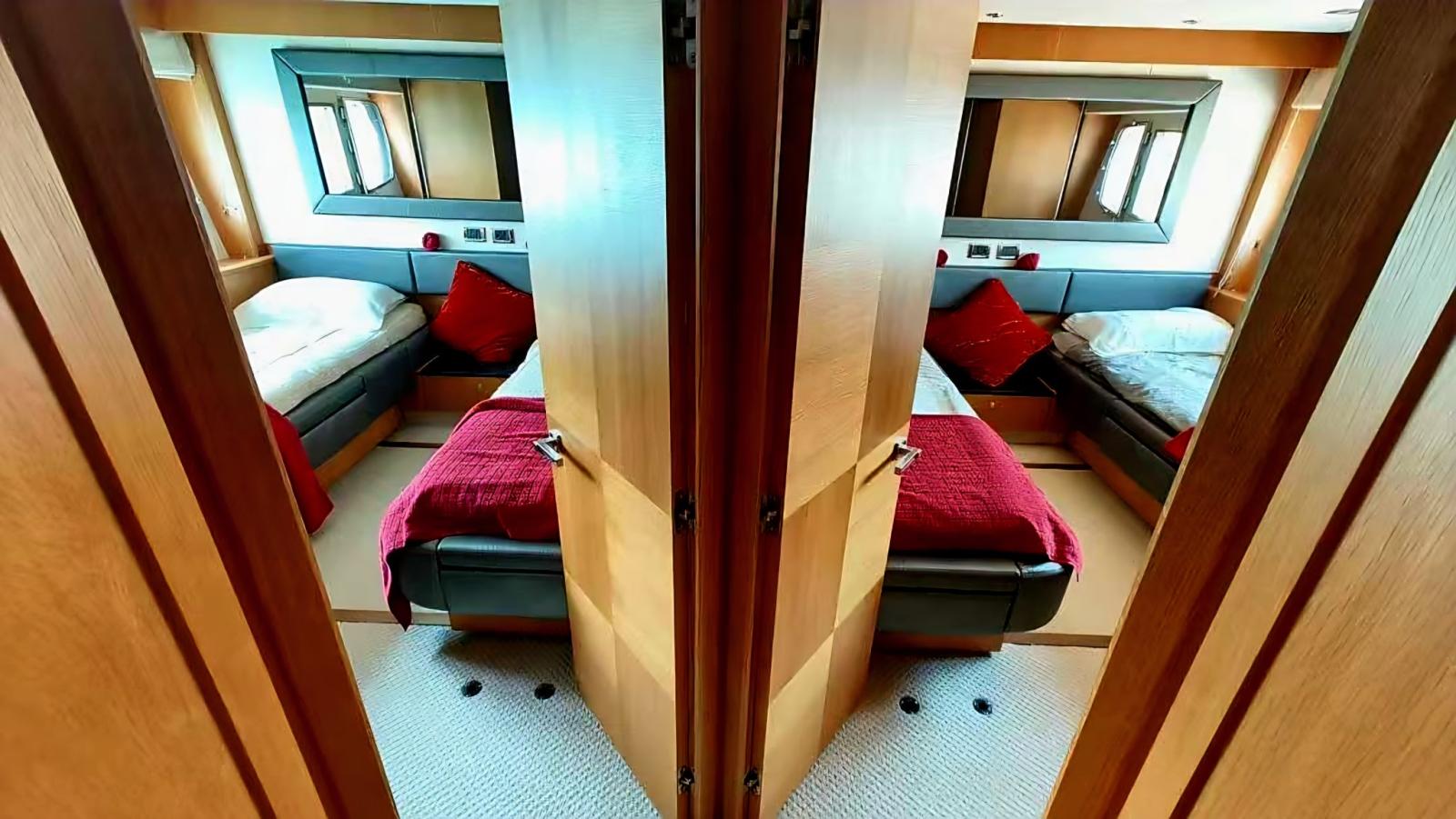 2 double cabins with flat beds with private bathrooms