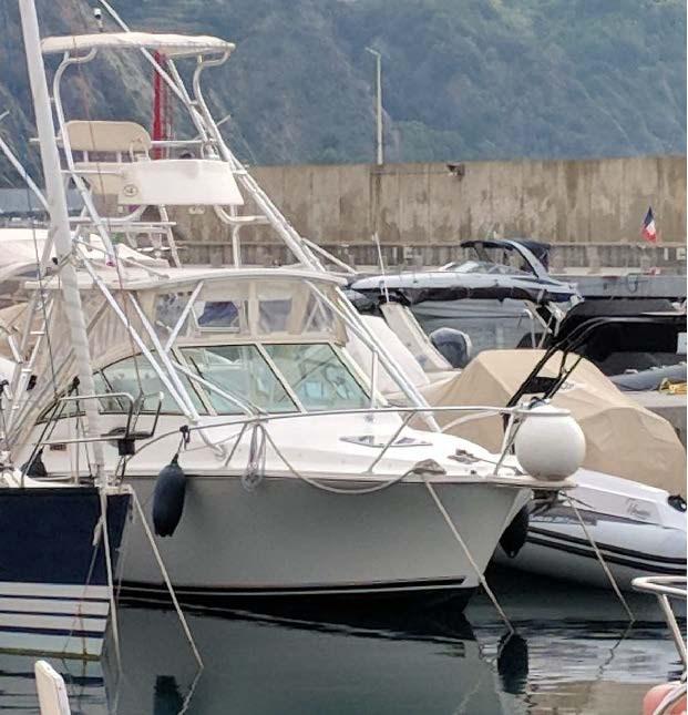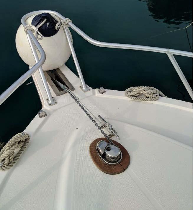 Tuna Tower with second guide, tank for live bait and catch, complete cushions, transparent closing awnings, electric windlass,