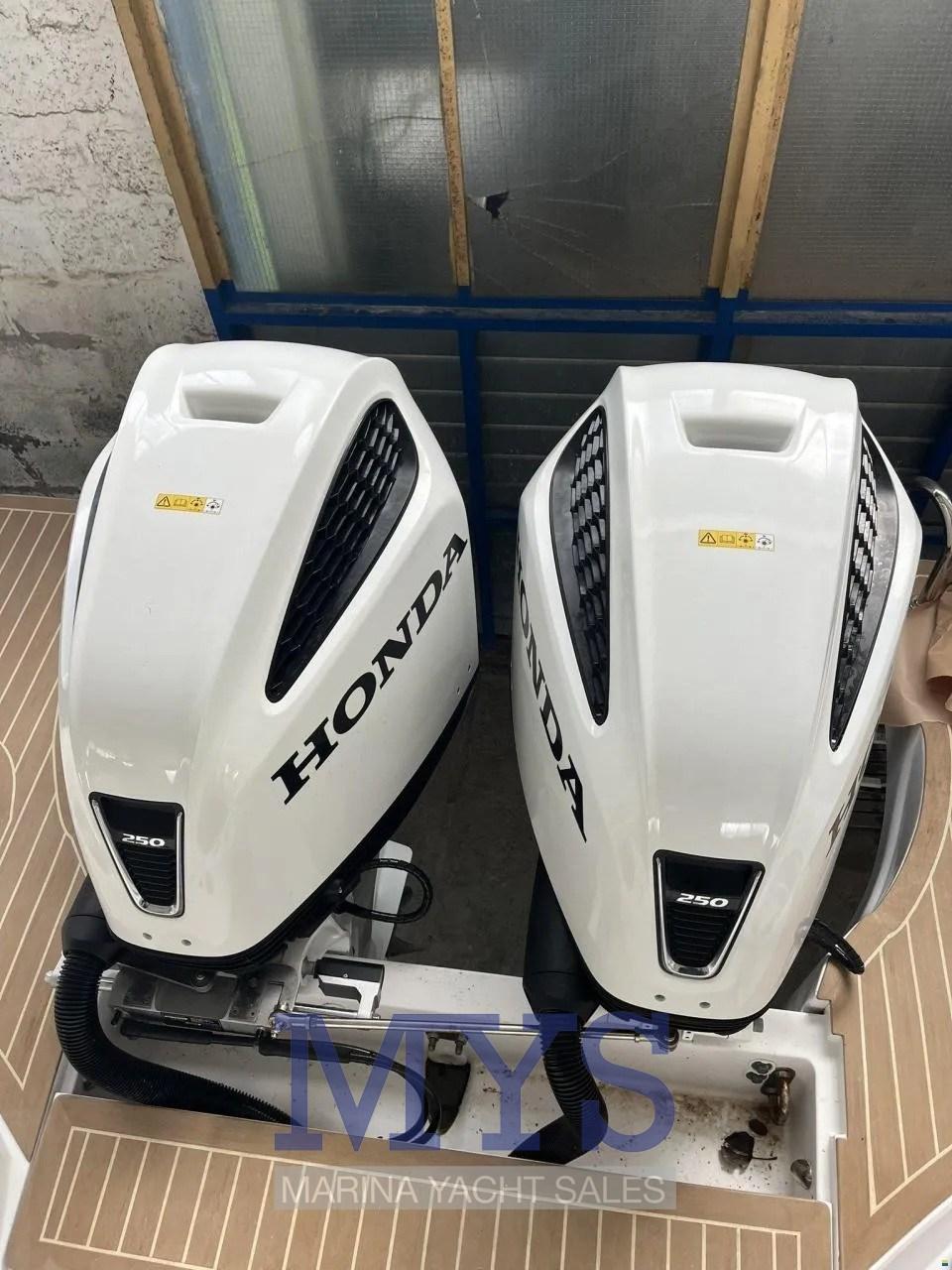 The large sunbathing spaces fore and stern, the ergonomic center console and the high-level finishes guarantee a refined and functional on-board experience, ideal for both day trips and for the most exclusive pleasure. The high-performance hull ensures stable, dry and safe navigation, even at high speeds.