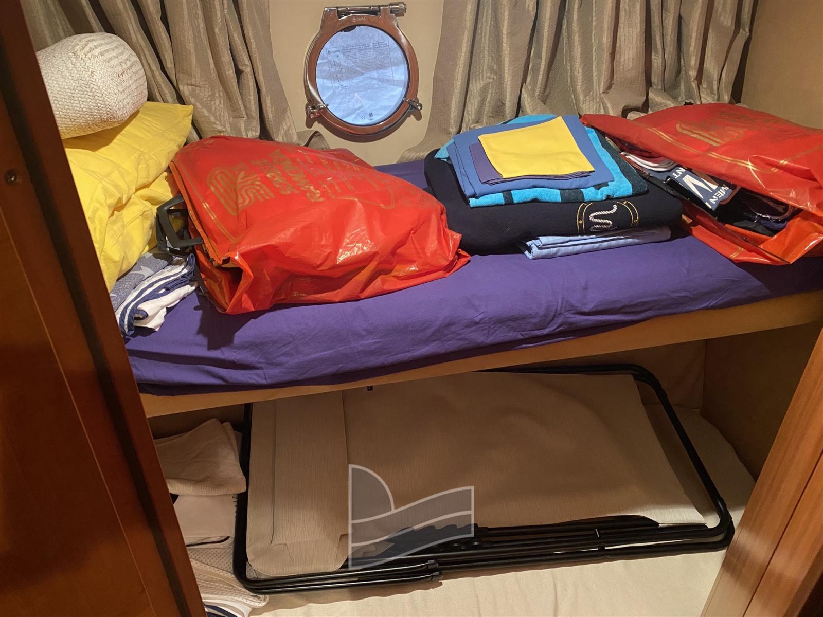 Engine Alarm, Water pressure pump, Shore power cable, Deck Shower, Twin Steering, 2 Hydraulic Flaps, Fire Extinguishing System, Gangway (Idraulica), Platform (di poppa in teak), Automatic Bilge Pump, Entry door, Teak Cockpit, Shorepower connector, Rollbar, Electric Windlass, swimming ladder, Horn.