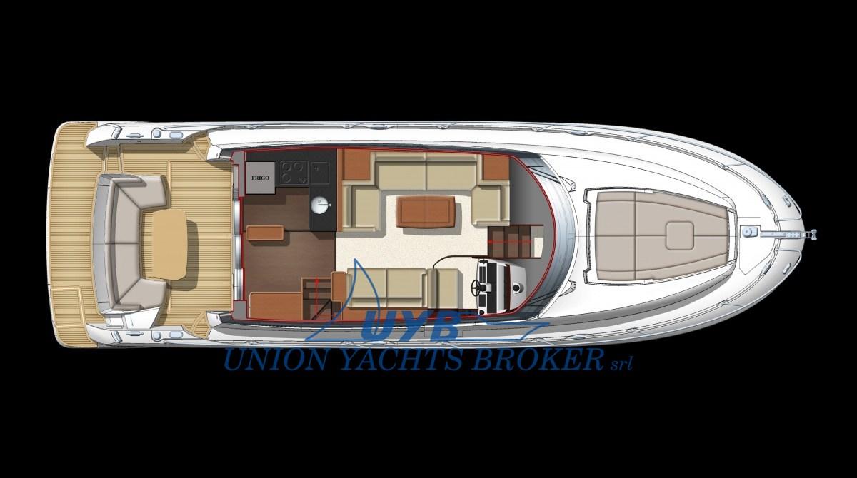 Bilge Alarm, Electric Engine Compartment Opening, Water pressure pump, Deck Shower, Directional Spotlight, Electric Flaps, Tender Garage, Hard top, Courtesy Lights, Underwater lights, Gangway (idraulica), Platform (strutturale), Automatic Bilge Pump, Entry door, Teak Cockpit, Shorepower connector, Voltage Rectifier, Electric Windlass, swimming ladder, Stabilizers (Seakeeper), cockpit table.