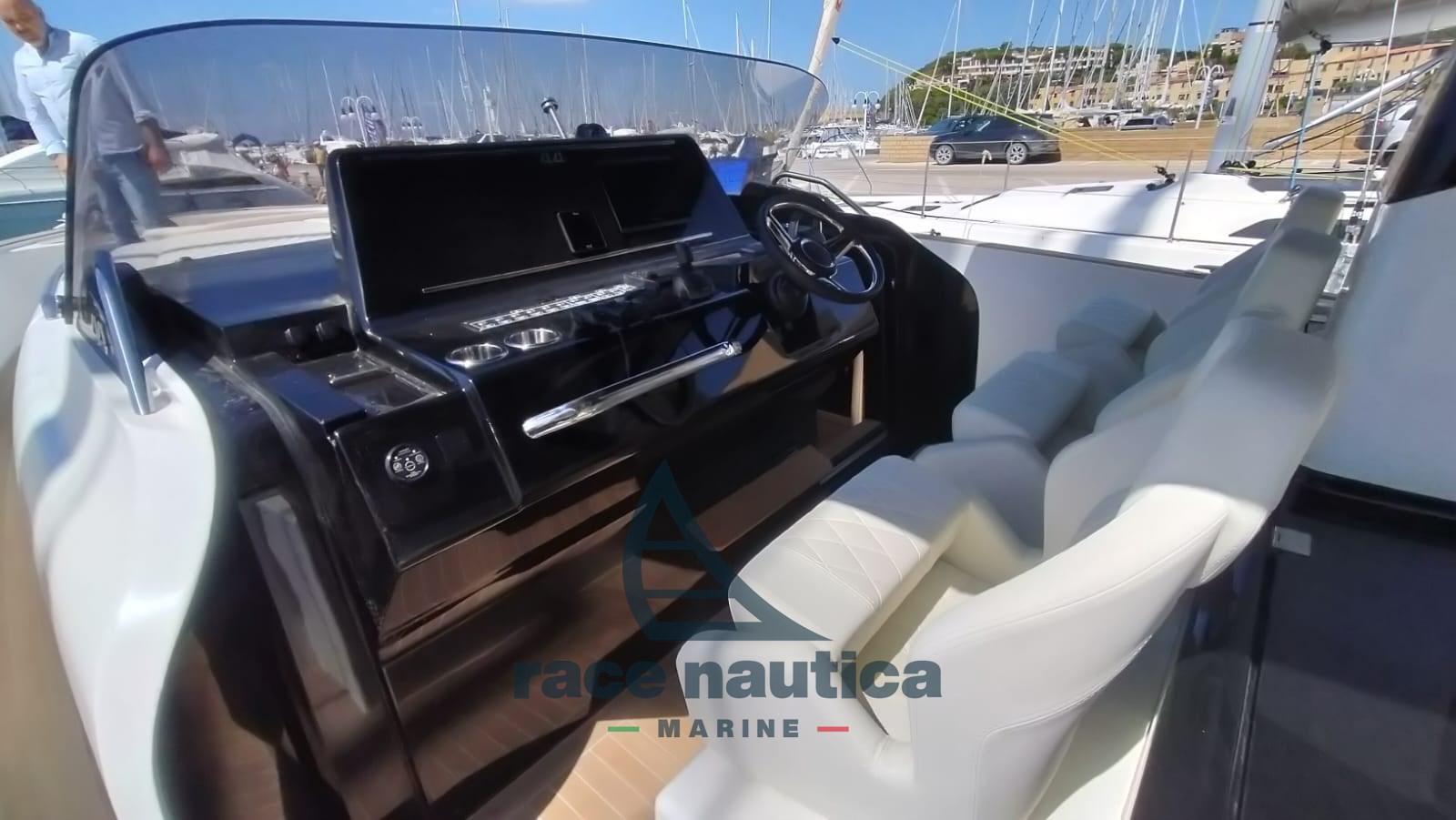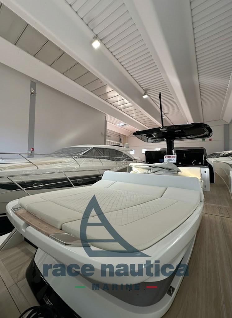 Solaris Power 44 Open - new, unregistered, no flag, with a one-year warranty. The boat has never sailed and has never had a owner. Original packaging still present on beds and sofas, as it was used exclusively for display in front of the Race Nautica Marine office, as an official dealer of the shipyard. 2 VOLVO PENTA IPS 650 (D6-480HP) increased, 10 hours of navigation, natural teak with gray joints throughout the boat, light interiors, double cabin with double beds + dividing door between the two cabins, generator, double GARMIN 12" monitor, side opening terrace, Automatic Interceptor, Manual Interceptor, Joystick Drive, Low Speed mode, Depth sounder, GRID remote control keypad for multifunction display, Autopilot, Teak deck with black grout, supplement for gray grout, opening side terraces with teak covering, long aft swimming platform with hydraulic up and down system including automatic descent ladder, aft sundeck with separate bench, electric opening, cushions, Upgrade for diamond pattern on external upholstery, Auction flag holder for two flags, hot/cold air conditioning in the bow area, aft owner's cabin complete with hull glazing, separation wall with door for the two cabins, digital chain counter, luxury kit, mooring kit, stainless steel fender holder pole in the bow locker, owner's cabin stereo system, additional service batteries, courtesy light package, 3 helm seat covers, aft sunbathing covers and sofa, aft seat covers, cockpit table cover, 5kW generator, aft bimini with removable carbon poles complete with stowage supports.