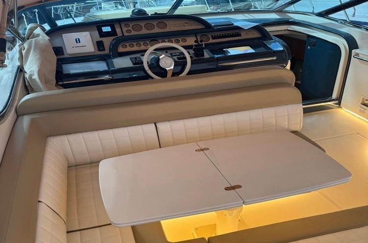 The SARNICO 55 MAXIM stands out for her comprehensive and refined equipment, including: generator and air conditioning (interior and exterior), bow thruster, retractable hydraulic passerelle, Raymarine electronics with autopilot and external GPS, fully equipped galley with double refrigerator (interior and exterior), microwave and ice maker, large sunbathing areas both fore and aft, wengé wood interiors, underwater lights, satellite antenna, and full aft enclosure for maximum privacy. - Check the full brochure, the video and the sea trial on our Web site MEDIA SHIP