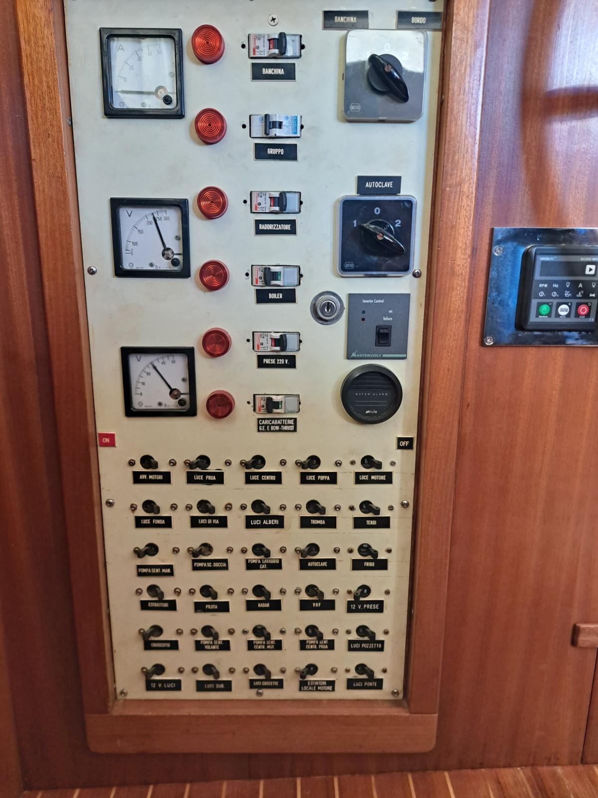 Imp. electric12/24/220 volt Revision:2025 Generator:3,5 KW INVERTER: Mastervolt combi 3,5 kw new 2025 INVERTER Mastervolt 1,5 kw 2023 Strum Wind : Wind Station Raymarine new 2025 GPS: Raymarine Charter Plotter: Interior Raymarine Axiom 12 - 2020 External Axiom 9 - 2024 VHF : Shipmate RS8300 Autopilot: Autohelm ST6000+ Windlass : Lofrans Titan complete with remote control and meter counter (2024 changed engine, shaft and bearings) Radar: yes Heating: yes Depth sounder: yes, Real vision 3D Raymarine Air Conditioning: yes, new 2025. Bow thruster: yes electric with reserved battery 2025 Chargers: Services 100 A 2025, engine 25 A 2023, bow thruster 25 A 2020, generator set 10 A 2020