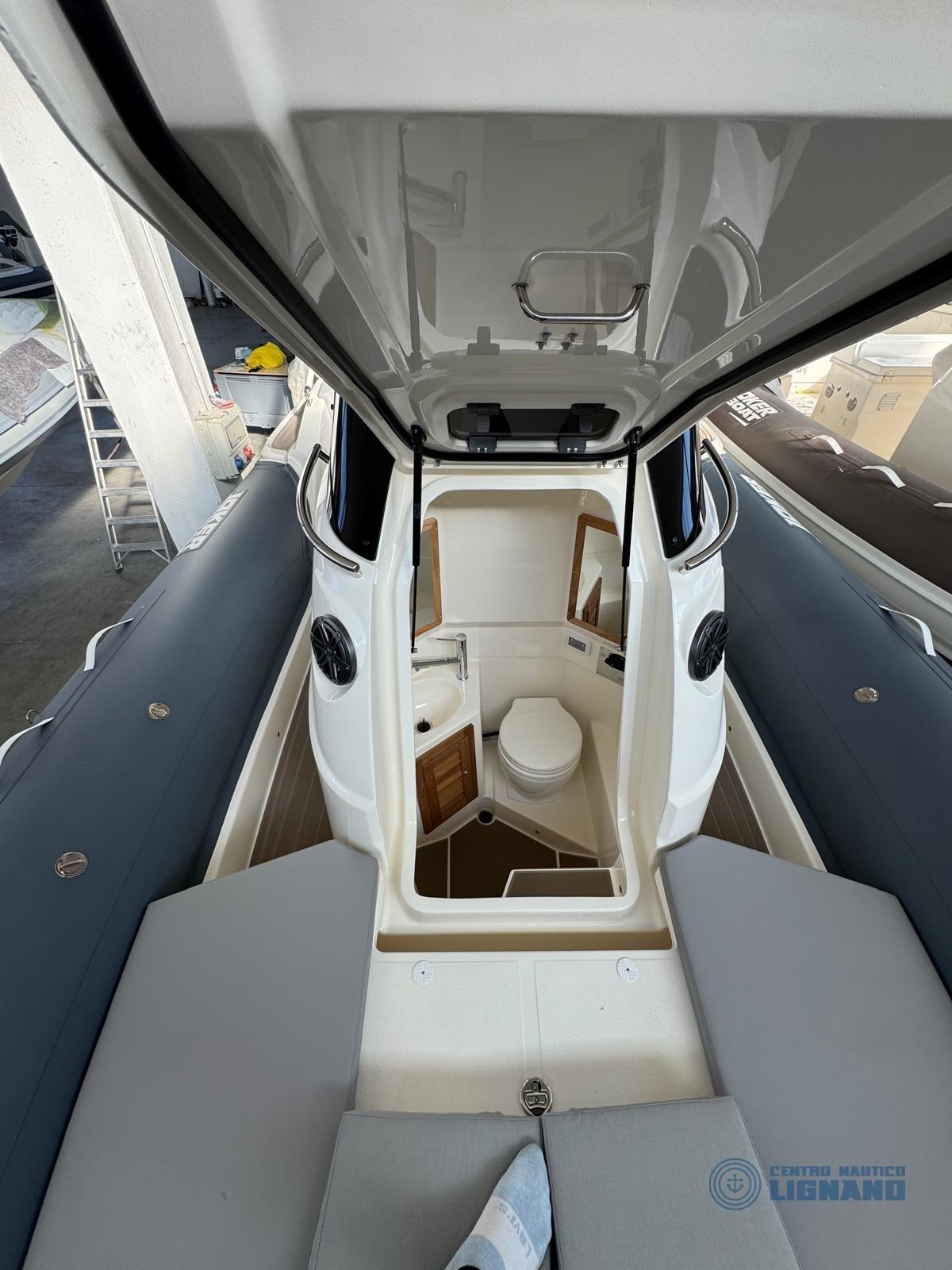 Joker Boats 28 Clubman READY DELIVERY (unless sold) full optional complete and ready to sail immediately ( 09/02/2026 ), new, hydraulic steering, double engine Honda Marine BF250DK1 2026 Sporty White color, Veratron 4.3" computer, electronic binnacle control, electronic ignition with double panel, engine power certificate ( 2 ), Fusion stereo system, audio speakers 4, water tank 120 lt, 400 lt fuel tank, electric winch with anchor and chain, chain counter computer, deck courtesy lights, CE certified hull, white hull color, console with windshield, GRAY tubulars, gray sunbathing cushions and driver's seat, stainless steel handrail, 51 lt refrigerator, hooks for suspending, ski hook, electric inflator, shower system, toilet system with macerator, black water system, pull-out shower, repair kit, washbasin and cutting board, navigation lights, user manual, paddle with boat hook, 9-function utility panel, bilge pump, stainless steel recessed ladder, acoustic signal, bilge blower, table with stainless steel leg and sun cushion, folding table in the kitchen area, retractable sun awning (bow). earth-colored flooring and gray joint.