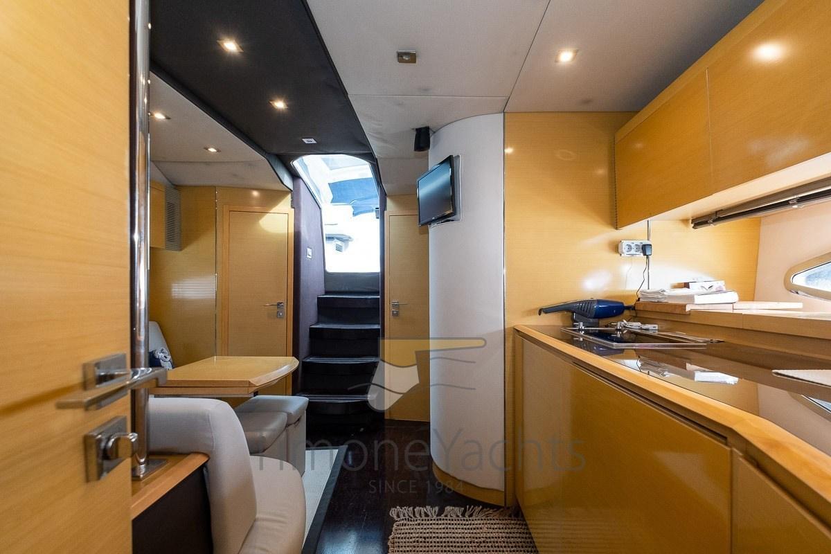 Tender Garage, Hard top (apribile elettricamente), Flaps Indicators, Washbasin in the cockpit, Courtesy Lights, Underwater lights, Gangway (a scomparsa), Platform (plancetta affondabile), Teak Cockpit, cockpit table, Stern Winches.