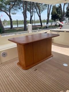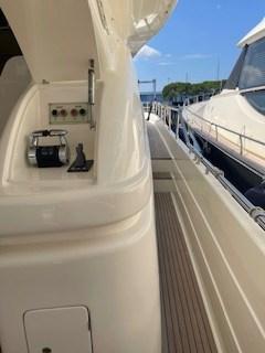 Fume/Gas Detector, Engine Alarm, Bilge Alarm, 2 Anchor (Bruce 50 Kg | Delta con catene maggiorate 2x100 m da 14mm), Water pressure pump, Teak Side Decks, Canoe, 2 Battery charger (Mastervolt e Mastervolt Combi), 2 Deck Shower (pozzetto), Twin Steering, 2 Directional Spotlight (manuale sul rollbar | elettrico sul flybridge), Tender Garage, Davits for tender on fly (600 Kg), Fire Extinguishing System, Anchor Chain Washdown, 2 Washbasin in the cockpit (e sul flybridge), Courtesy Lights, Underwater lights (a poppa), Gangway (Besenzoni), Platform, Automatic Bilge Pump, Manual Bilge Pump, Entry door, Side door, Teak Cockpit, Shorepower connector, Water harbor connector system, Electric Windlass, swimming ladder (con maniglione in acciaio inox), Stabilizers (giroscopico), cockpit table (in Teak allungabile a 8 posti), Tender (Williams 385), Horn.