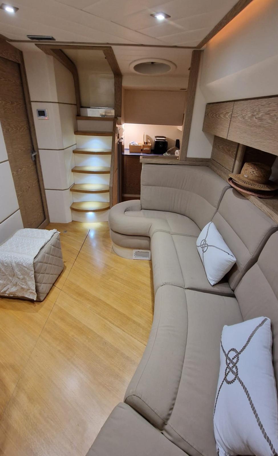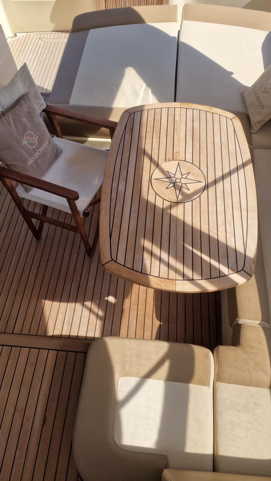 new interior furniture in wood and leather - new curtains and interior upholstery - new teak deck - revised cockpit with the creation of a sofa / sundeck - new external cushions
