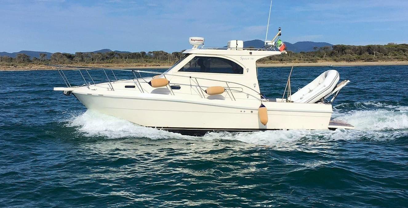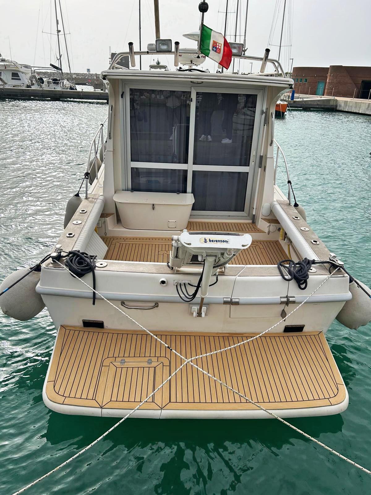 Boat ready for navigation equipped with new engines, axles, propellers, Axiom plotters and teak.