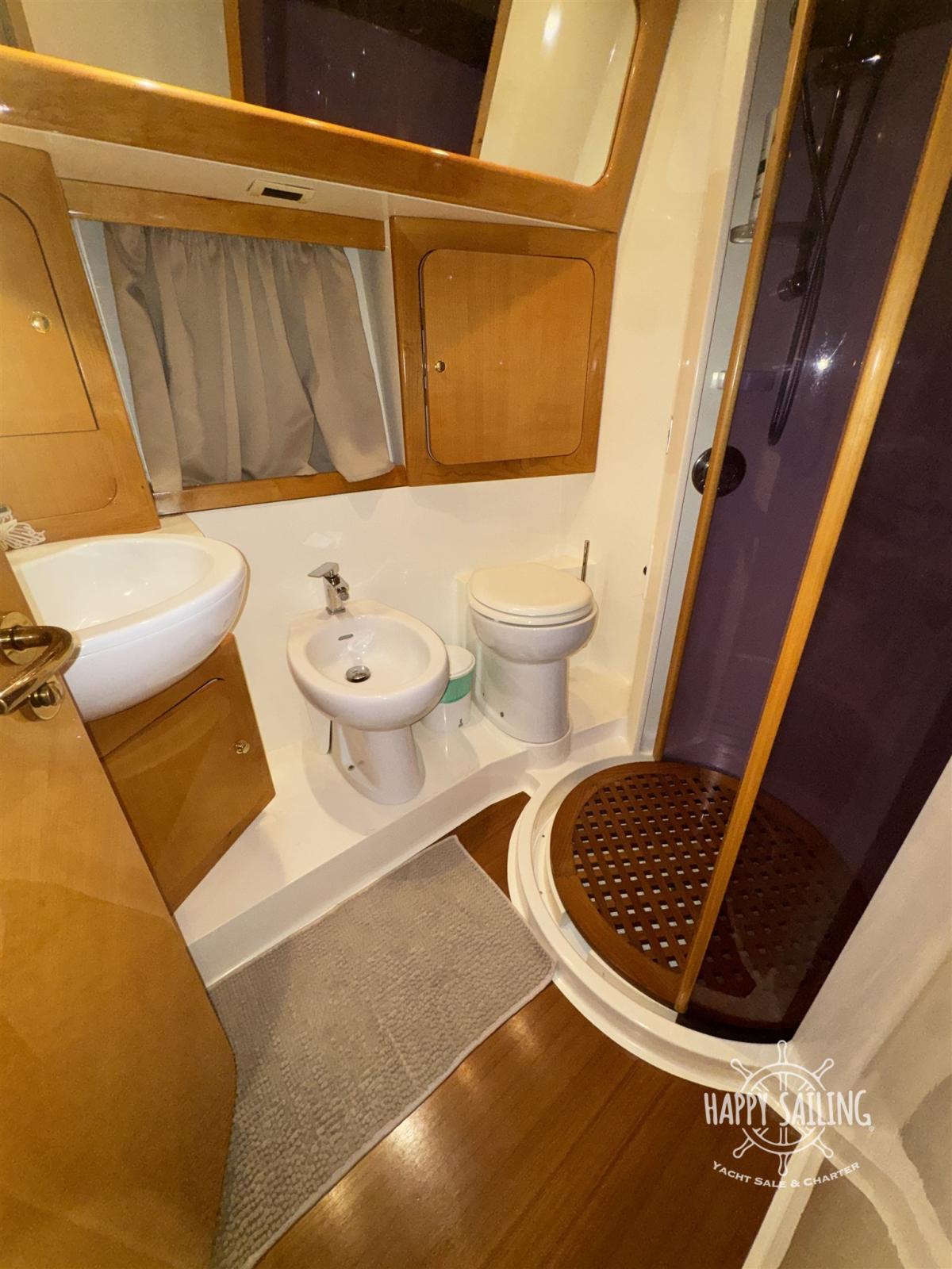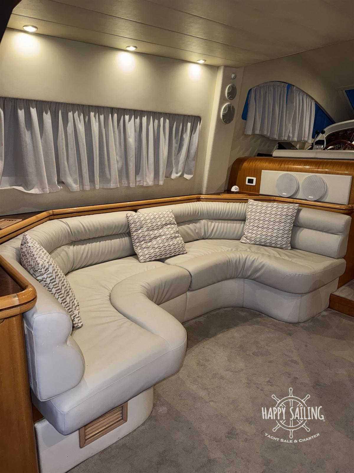 Water pressure pump, Deck Shower, Twin Steering, Fixed Flaps, Hydraulic Flaps, Anchor Chain Washdown, Courtesy Lights, Gangway, Platform, Automatic Bilge Pump, Teak Cockpit, Shorepower connector, Voltage Rectifier, Electric Windlass, swimming ladder, cockpit table.