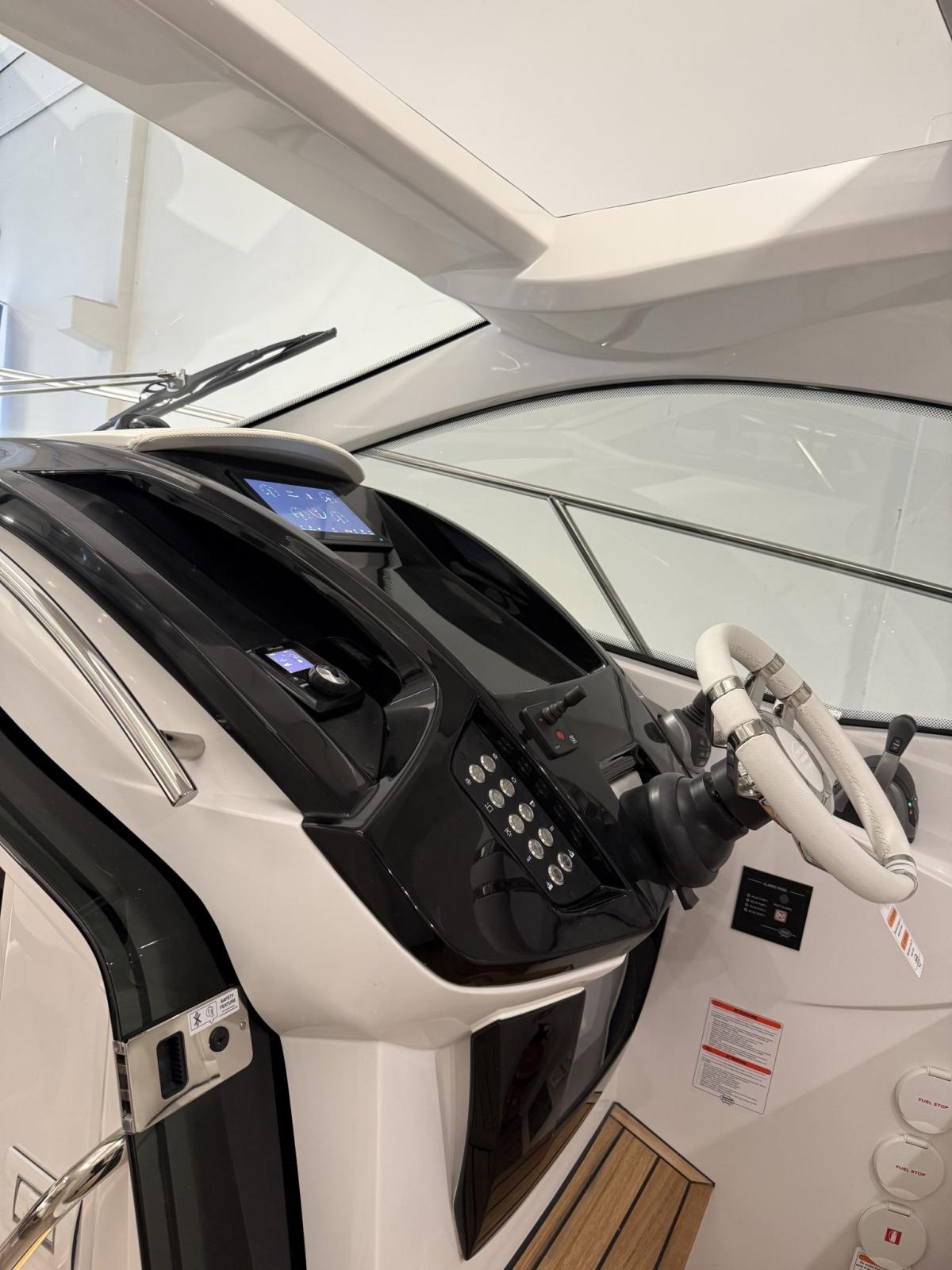 Electronic engine control, Chain counter, Joystick, Plotter with GPS antenna.