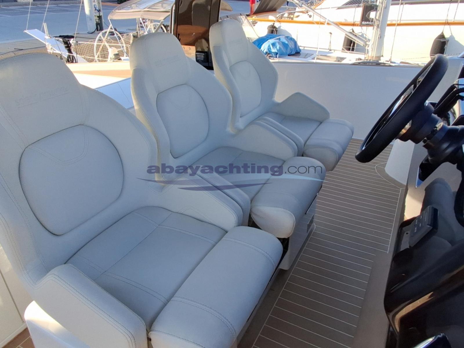 Cushions, Stern Cushions, Bow Cushions, 2 Sunbathing deck (poppa e prua), Instrument Cover, Electric Canopy (Integrato nel T-Top), Sunshade (a prua con pali in carbonio).