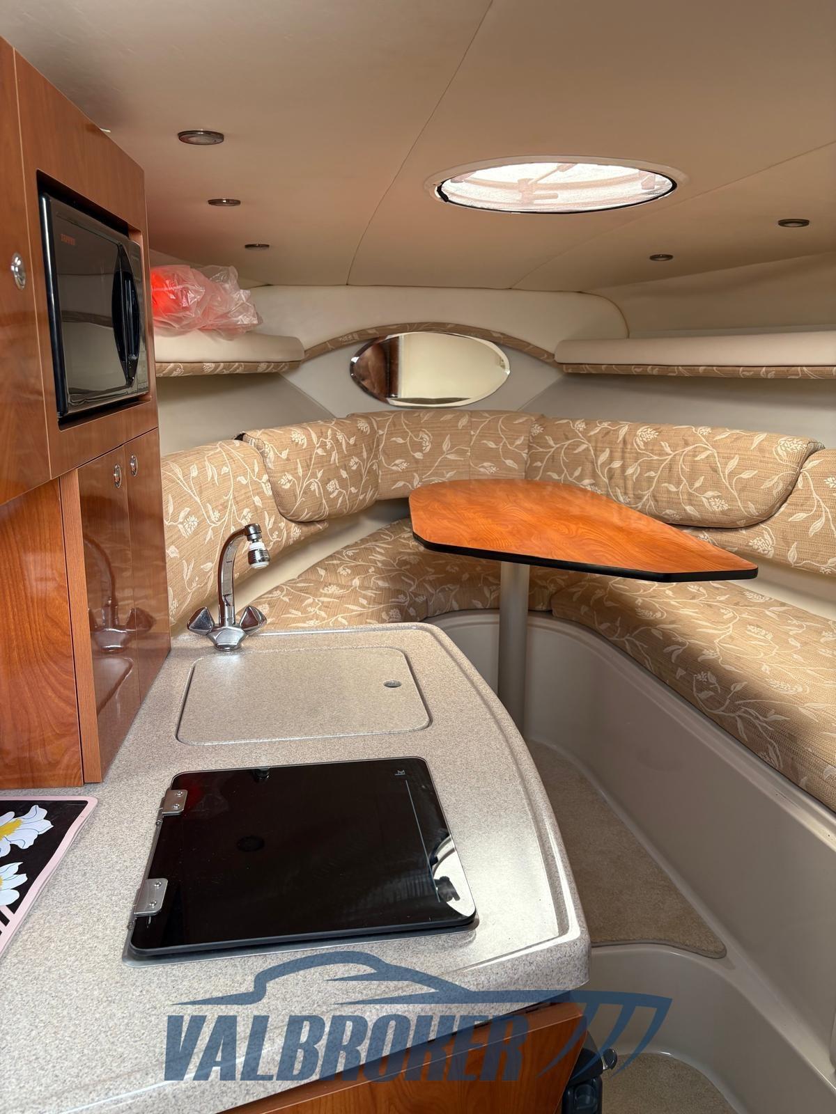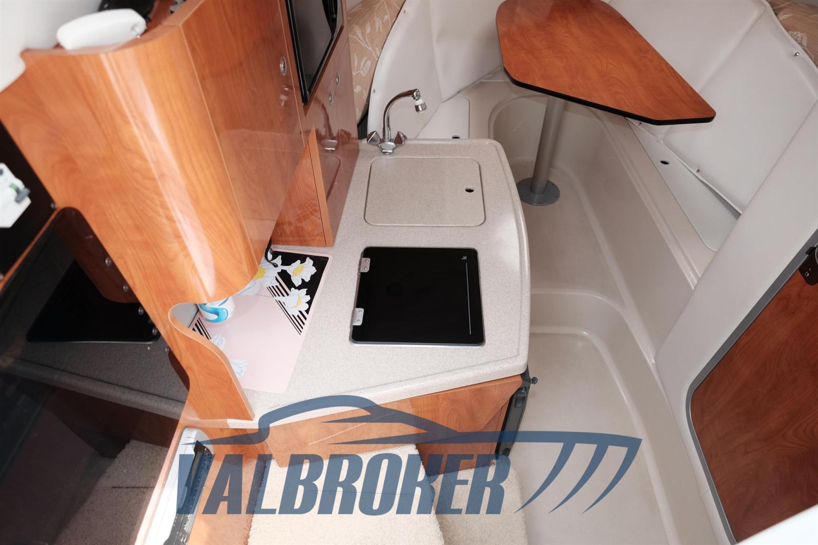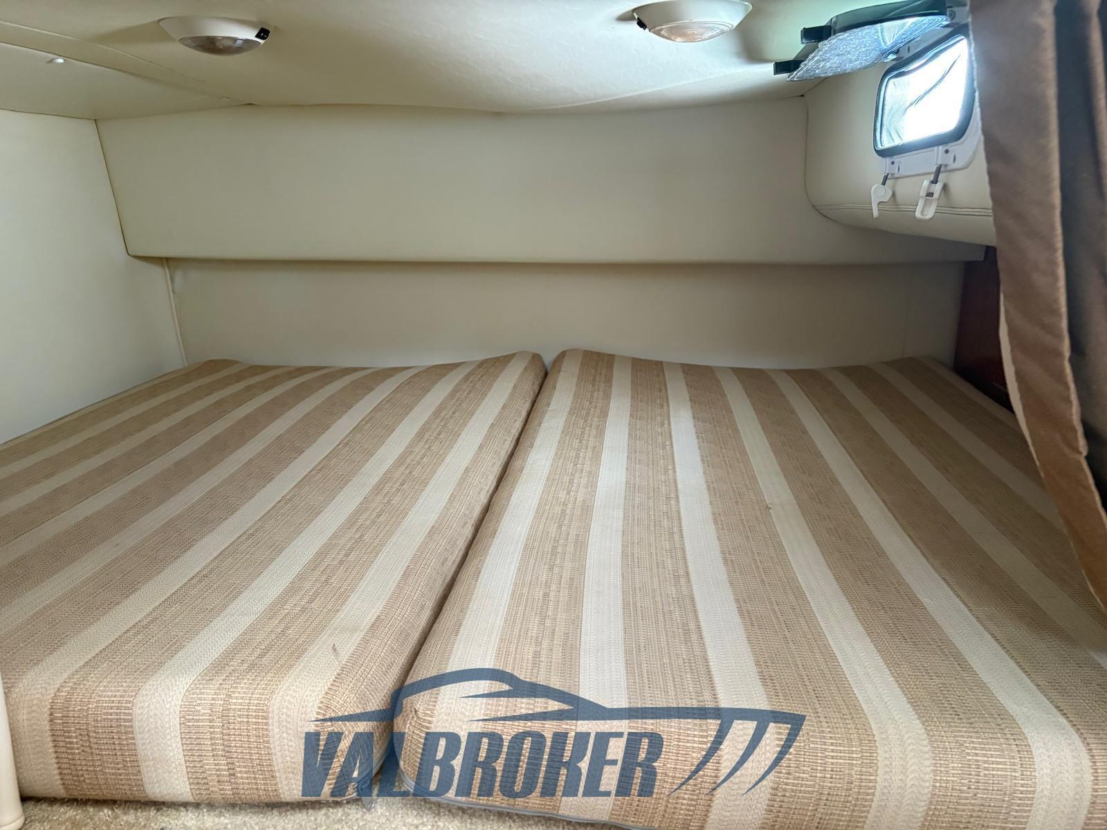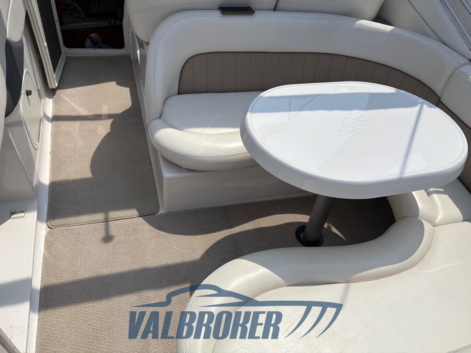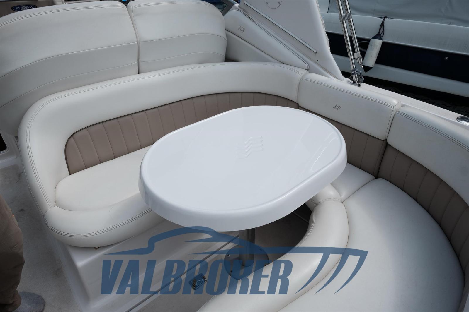Below deck there are 4 beds and a separate bathroom. Clarion stereo control in the cockpit, VHF radio never used, cushions in impeccable condition, flexyteak platform.
