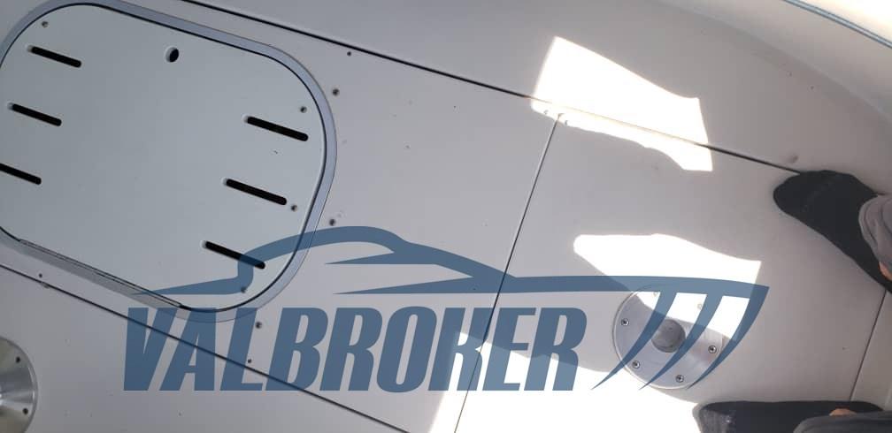 Water pressure pump, 2 Batteries, Special Colour (Blu), Deck Shower, Hydraulic Flaps (N°2), Tow hook for water skiing, Washbasin in the cockpit, Gangway, Platform (estesa), Shorepower connector, Electric Windlass, swimming ladder, cockpit table, Living Room Foldable Table, Horn.
