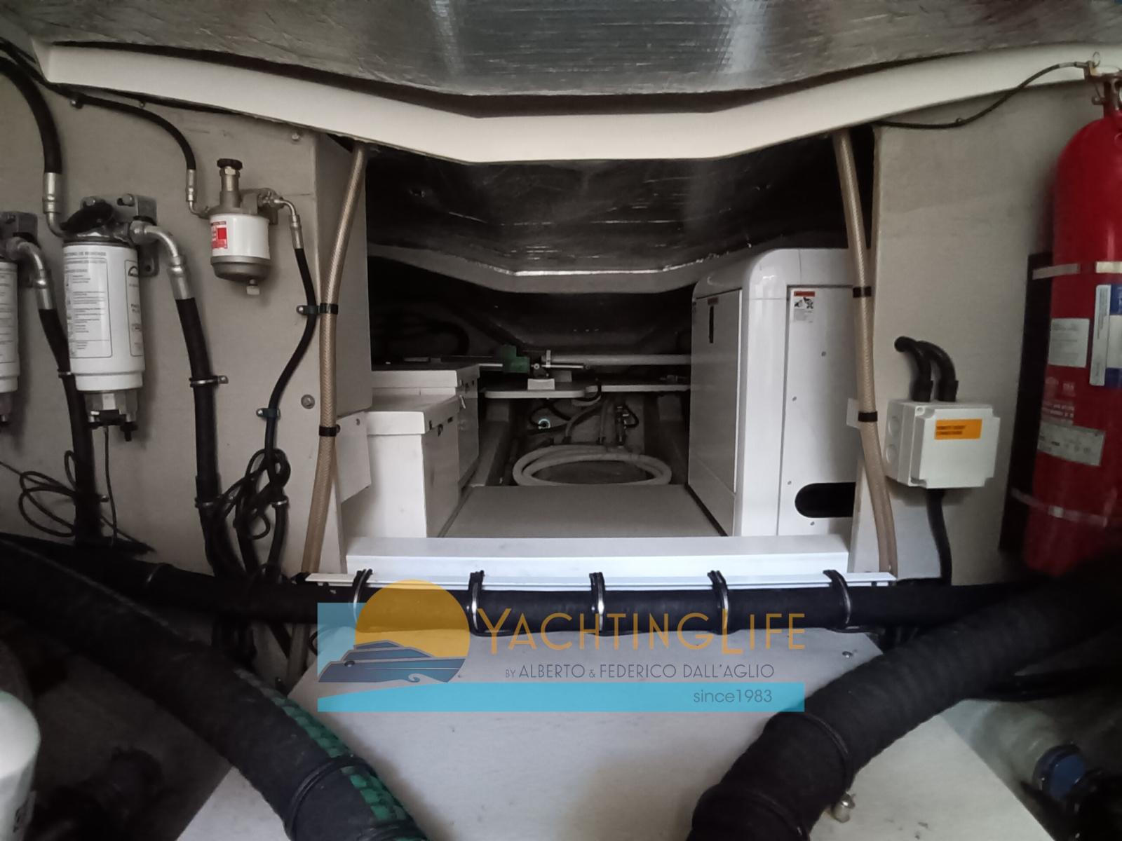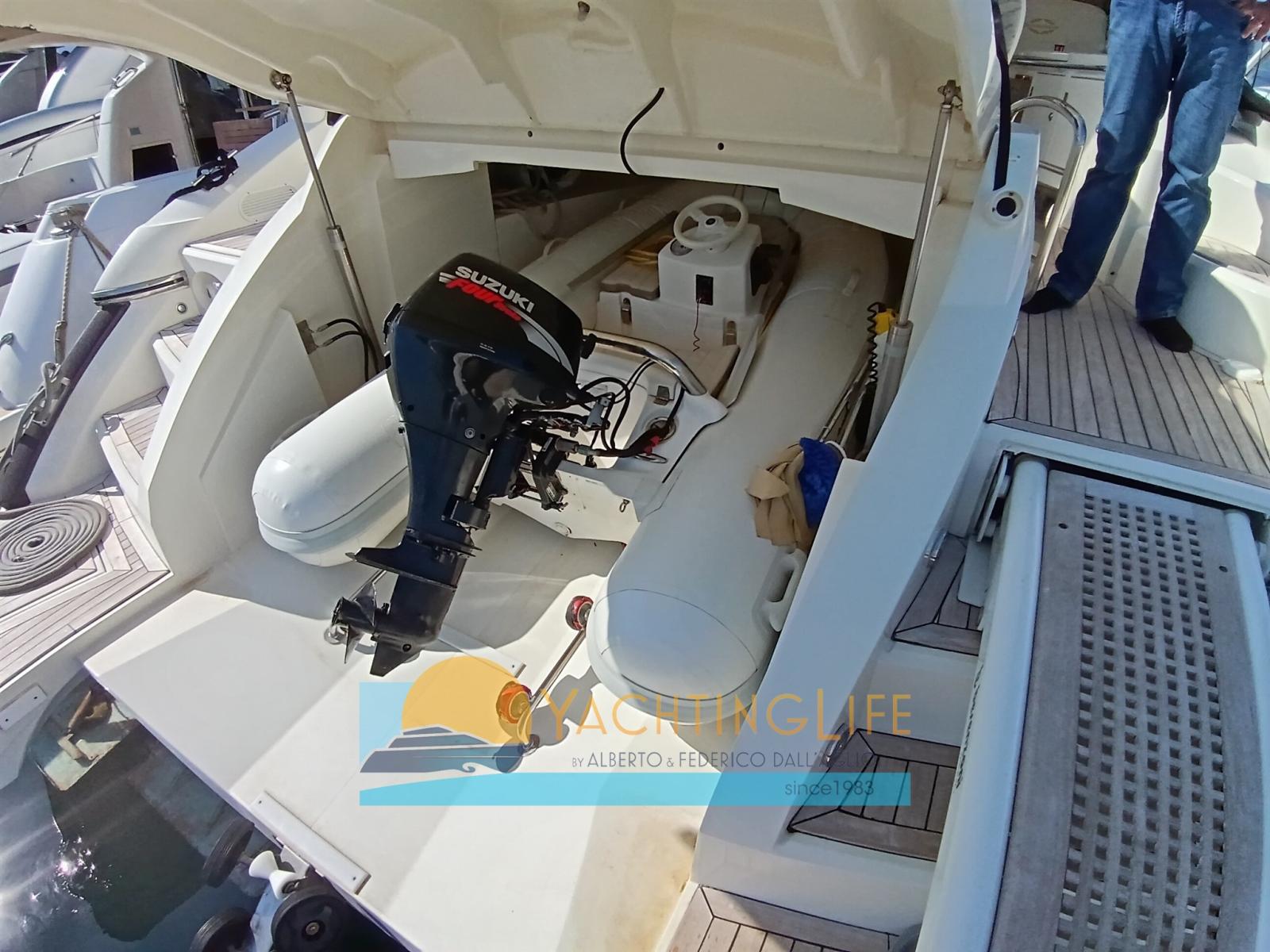 Engine Alarm, Bilge Alarm, Electric Engine Compartment Opening, Water pressure pump, 10 Batteries (2025), Deck Shower, Hydraulic Flaps, Tender Garage, Hard top, Fire Extinguishing System, Flaps Indicators, Courtesy Lights, Gangway (idraulica), Platform, Automatic Bilge Pump, Teak Cockpit, Shorepower connector, Electric Windlass, swimming ladder, cockpit table, Horn, Stern Winches.