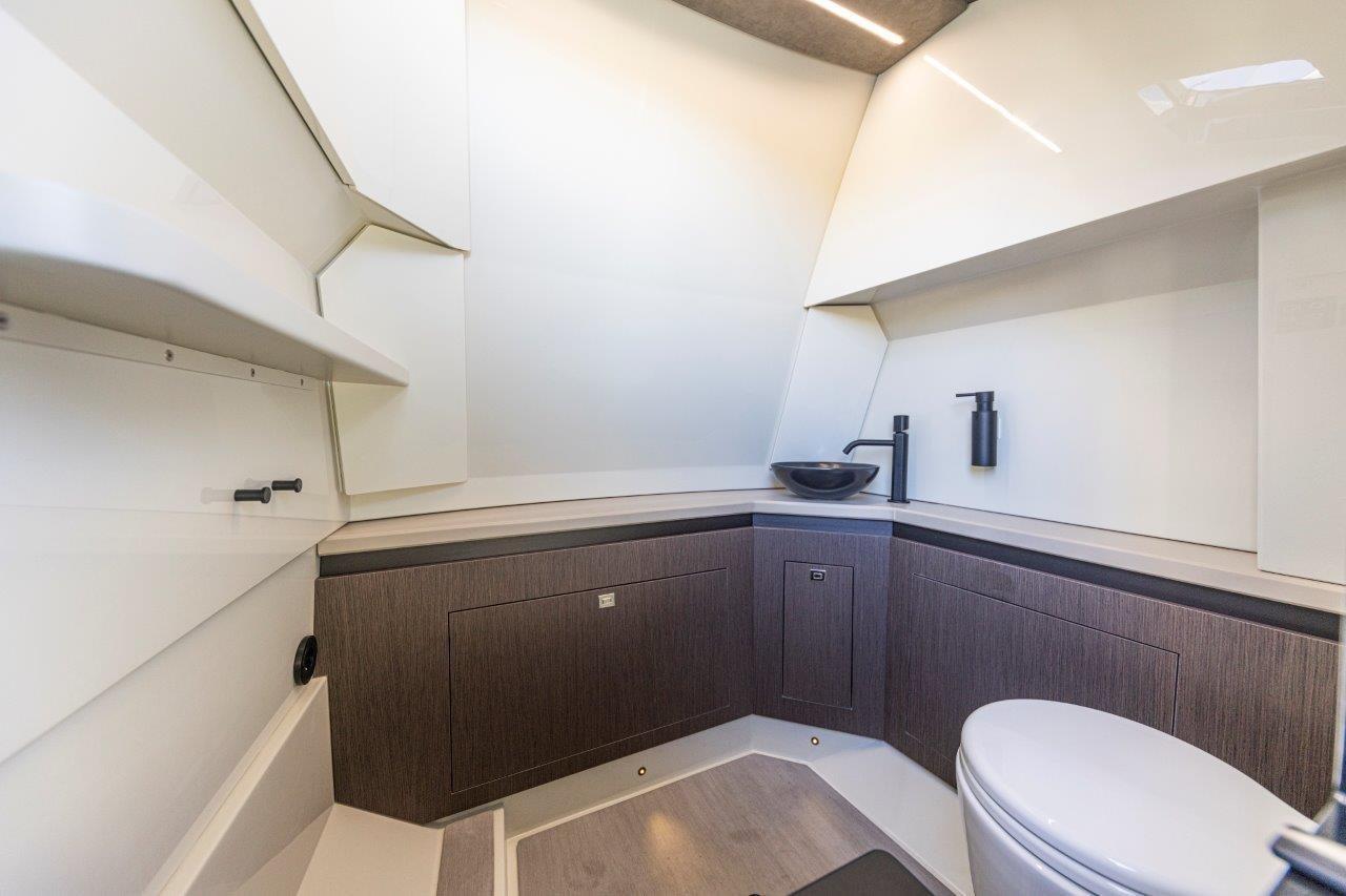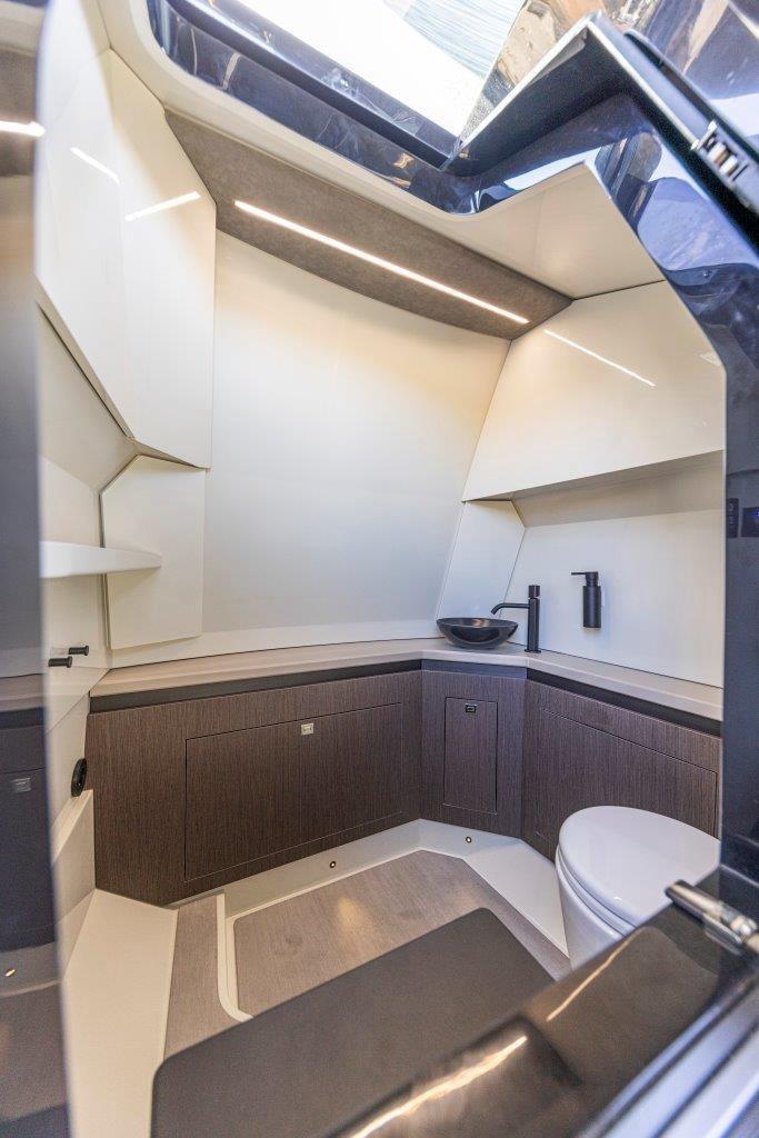 Deck Shower, Anchor mount, Shorepower connector, Electric Windlass, swimming ladder, Table, T-Top.