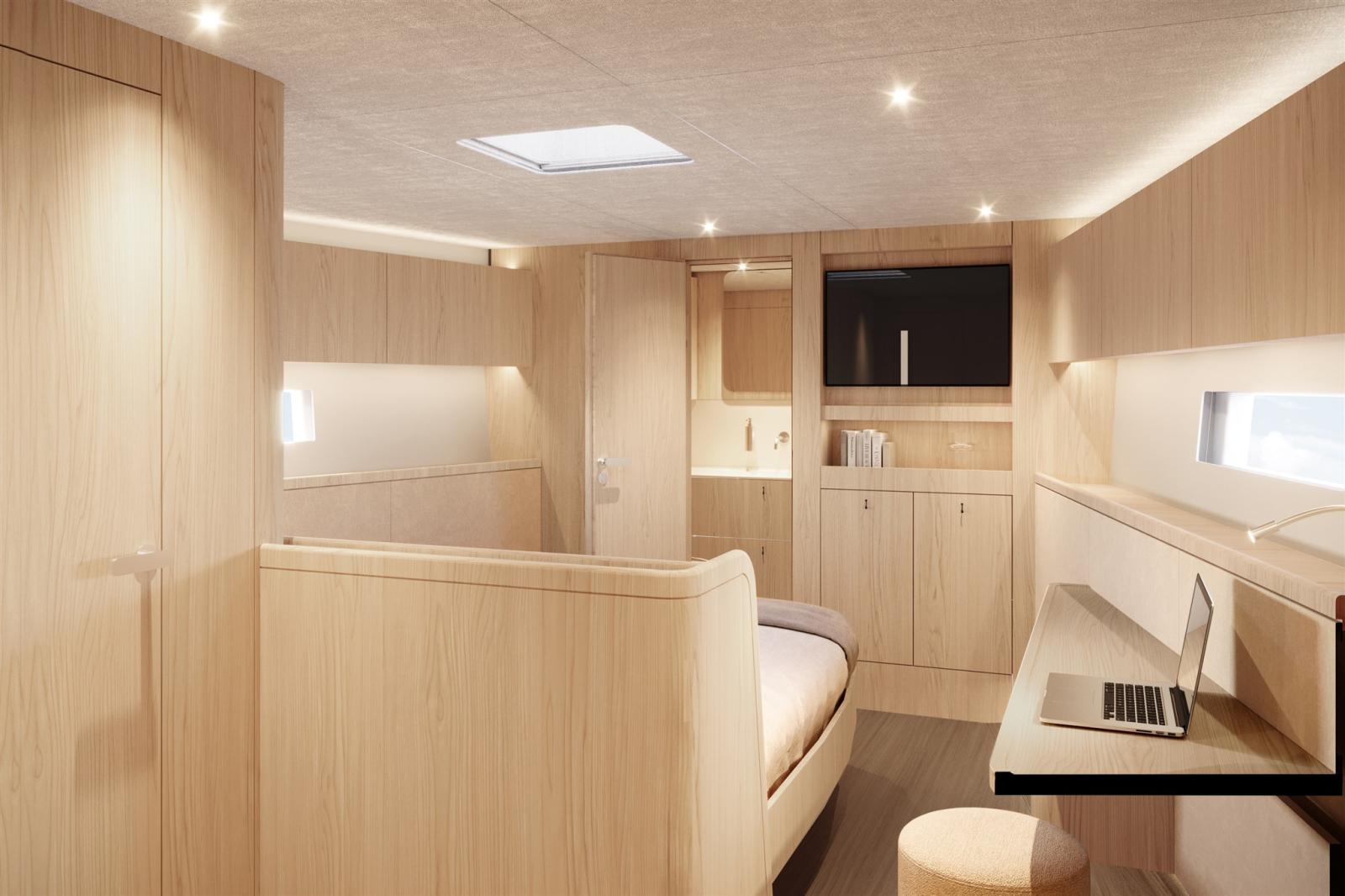 Below deck, the layout has been refined with a dedicated technical room, an enlarged owner’s cabin and several modular configurations that allow the interior to be tailored to individual requirements. The interior concept, created by the YYachts Design Team with David Thulstrup, is available in four distinctive atmospheres – Milano, Baltic, Glacier and Sugi Ban – characterised by natural materials and balanced palettes.