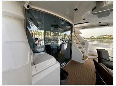 Engine Alarm, Bilge Alarm, Anchor (Ancora con catena e sistema di lavaggio), Teak Side Decks, Deck Shower, Directional Spotlight, Hydraulic Flaps, Hard top, Compressor Air System, Washbasin in the cockpit, Courtesy Lights, Underwater lights, Gangway, Platform (Idraulica), Manual Bilge Pump, Electronic instrumentation repeater (Strumentazione elettronica), swimming ladder, Stabilizers (CMC), cockpit table, Tender (con sedili per tender).