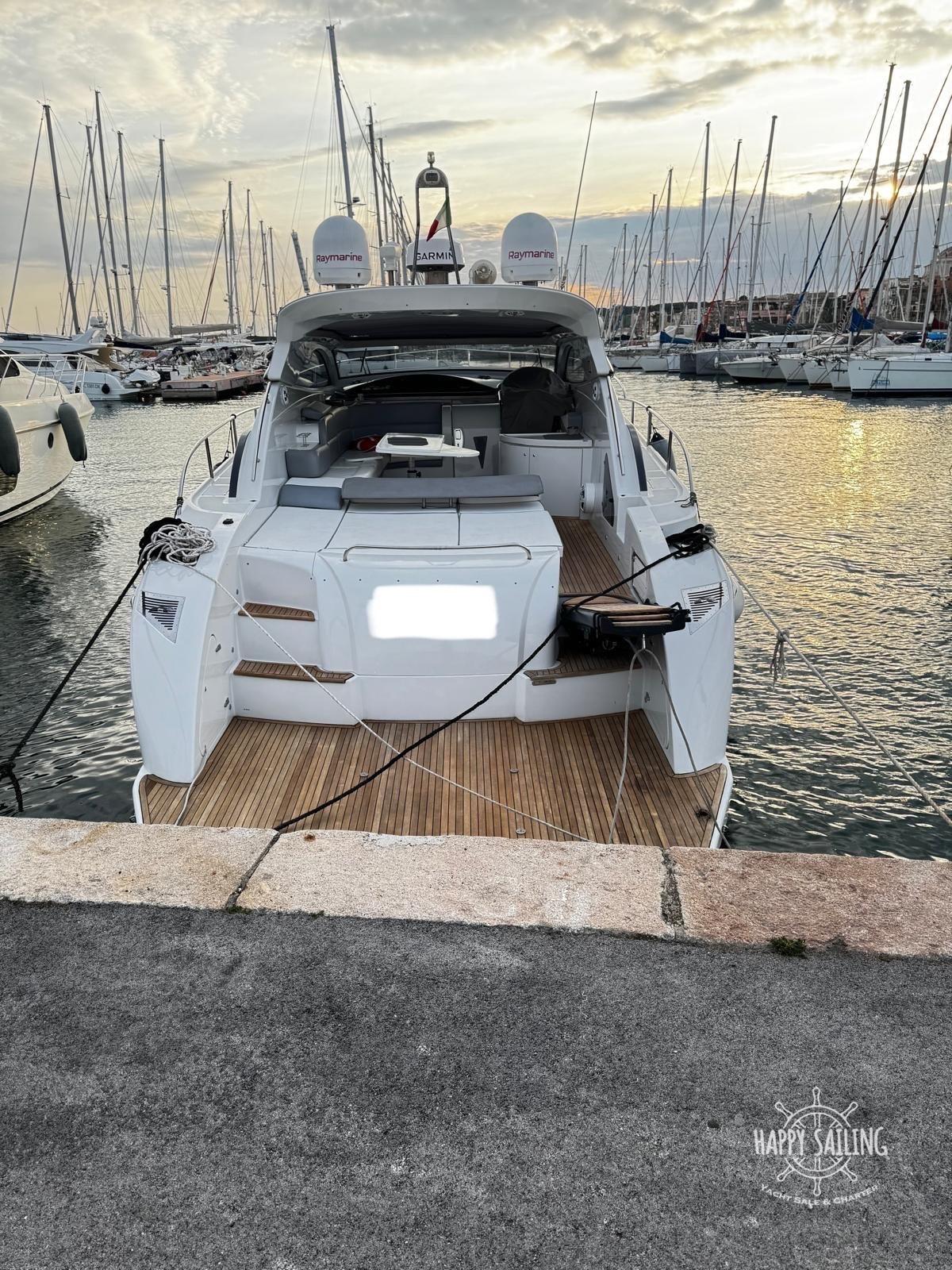 Water pressure pump, Hydraulic Flaps, Hard top, Flaps Indicators, Washbasin in the cockpit, Courtesy Lights, Gangway, Platform, Teak Cockpit, Shorepower connector, Electric Windlass, cockpit table.