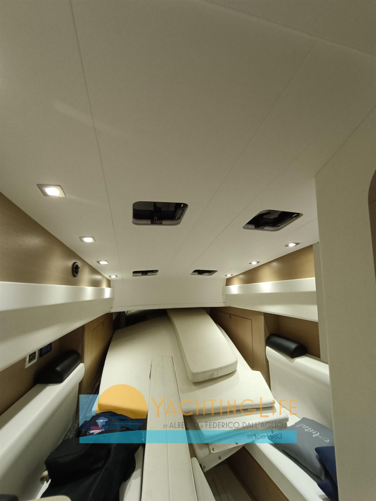 Dinghy 2015 engines 2017 - Hydraulic terraces, retractable hydraulic cockpit table - Cushions 2022, LEDs all around the perimeter up to the bow, underwater lights all 2022, fusion stereo with remote control, subwofer and amplifier, stern awning with carbon poles - Engines repainted white 2026 - New swim ladders - Polished and sanded teak 2026 - Generator overhauled