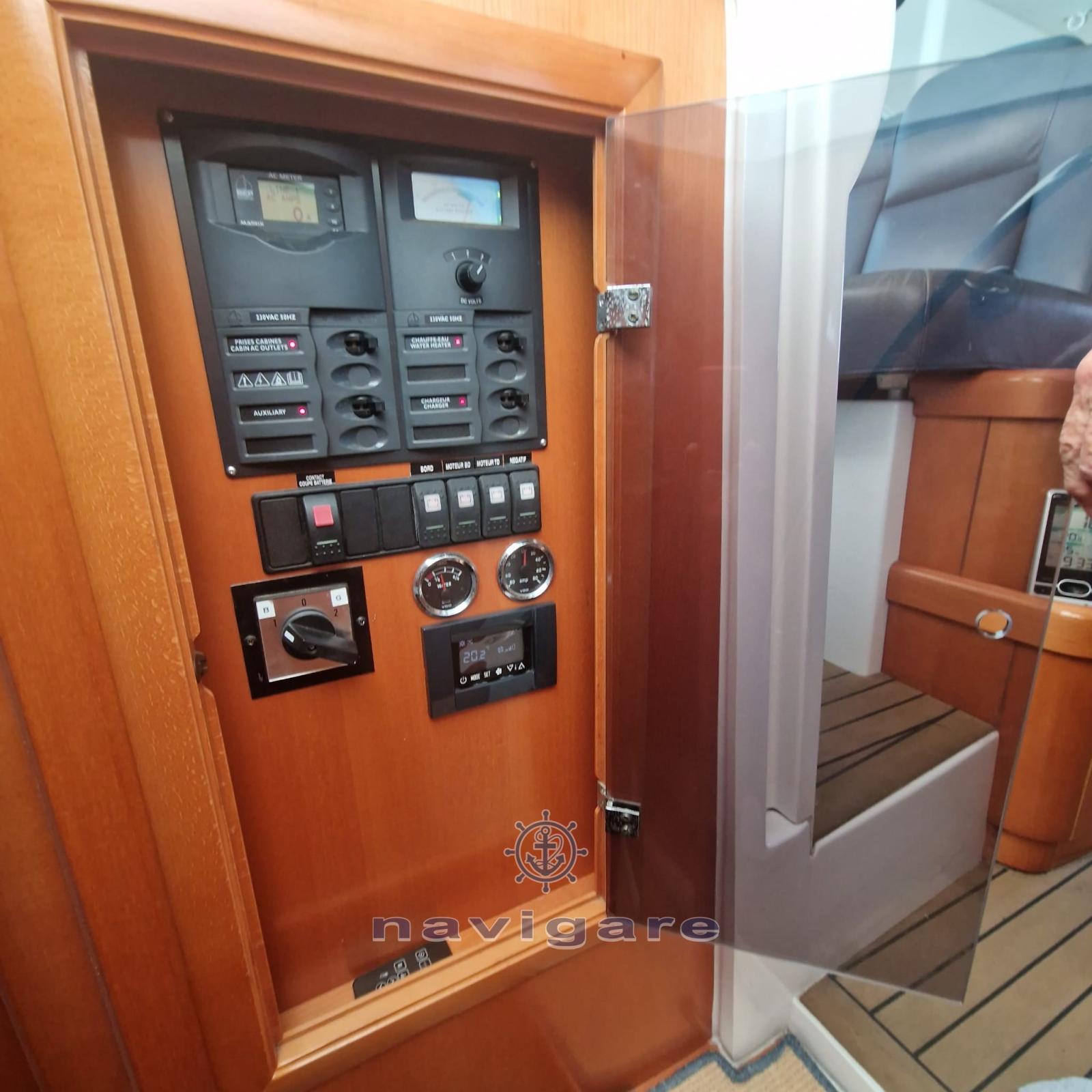 Electronic engine control (Smart Remote Controller, per controllo navigazione e autopilota), Depth Sounder (Raymarine), GPS (Raymarine), Autopilot (ST6001 Raymarine), 2 Plotter with GPS antenna (Raymarine (E120 postazione interna, E80 postazione fly)), Radar (Raymarine), 2 VHF Radio (Raymarine).