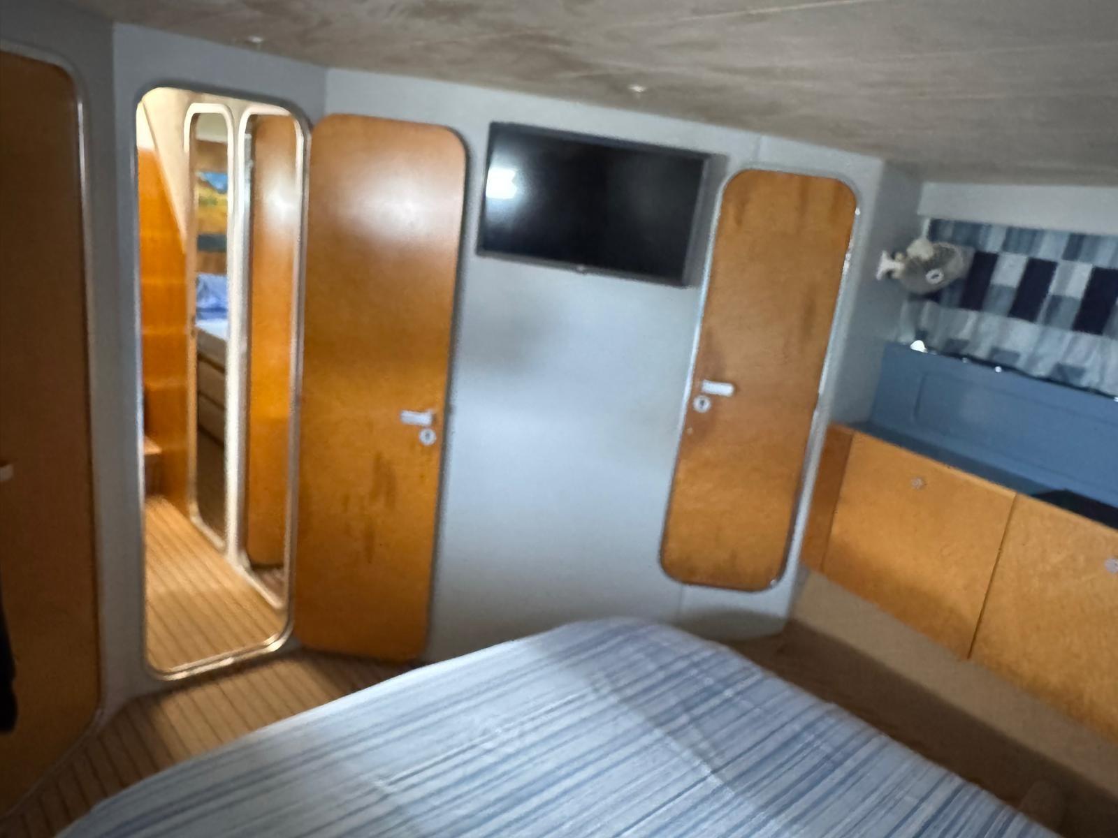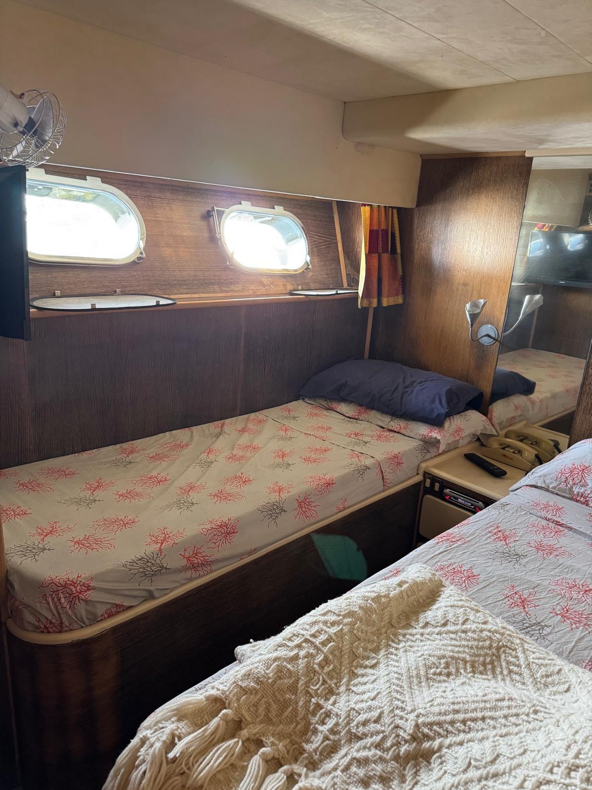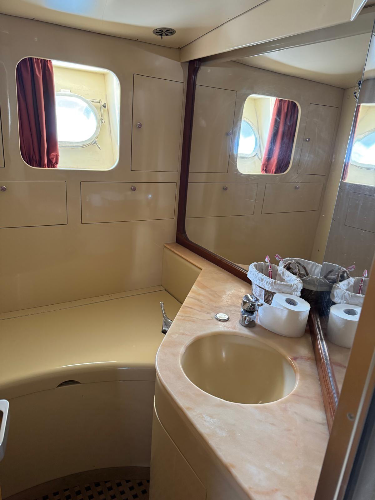 4 double cabins - 4 bathrooms with showers - Side door galley area - Crew cabin with bow access